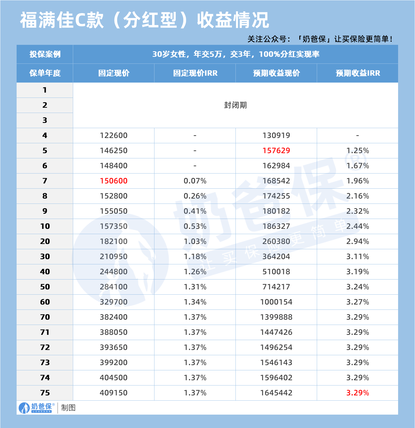 而福满佳C款的预期长期IRR能稳定在3%以上,还有固定现价托底,风险极低。