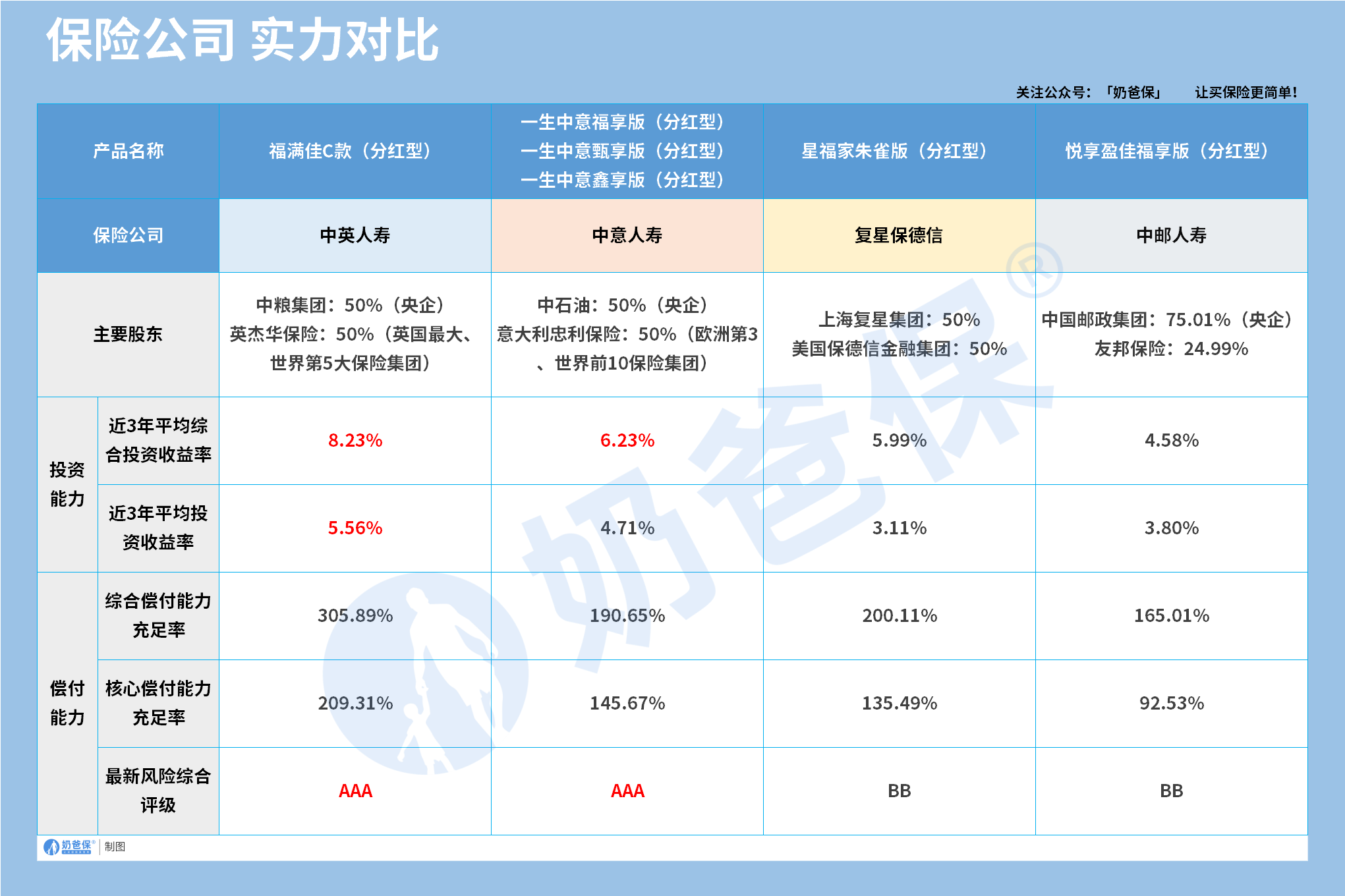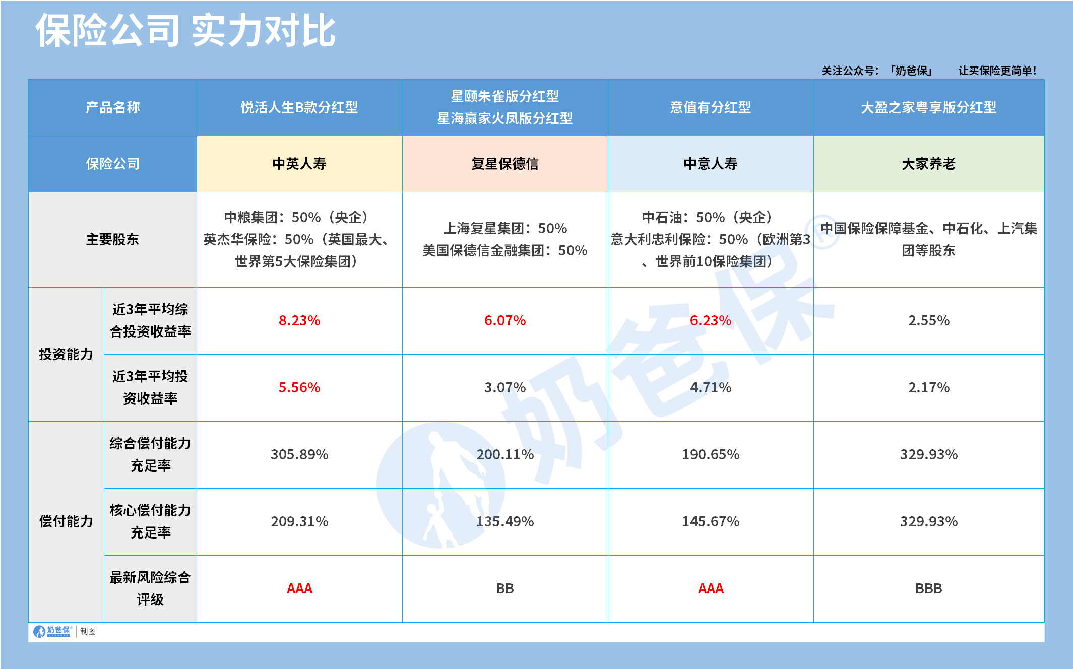也同样给大家汇总了以上几款分红型年金险的保司实力: