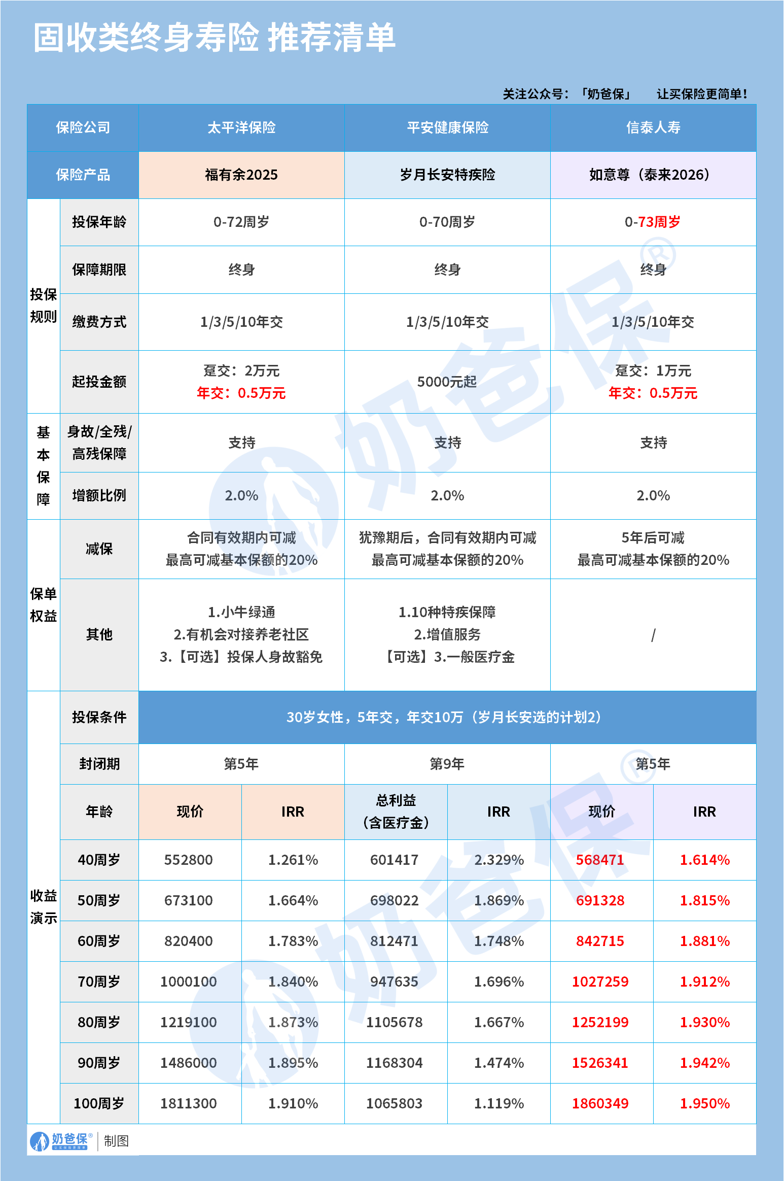 二、固收型终身寿险最新推荐榜单