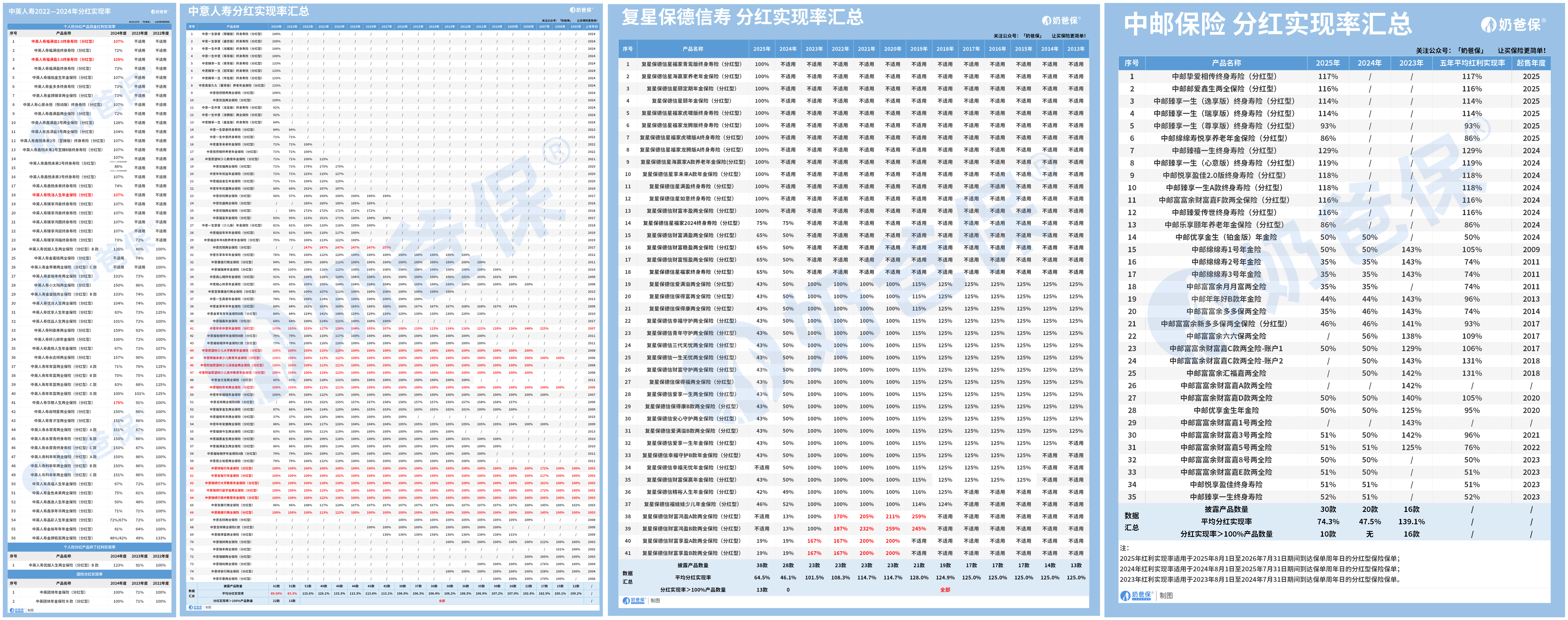 我也给大家汇总了这4家保司目前公布的,最新分红实现率: