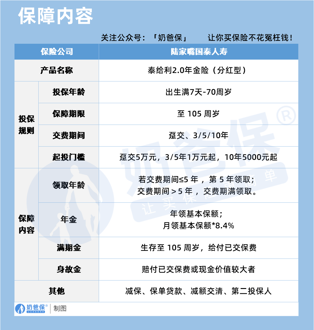 与同类快返年金险相比,泰给利 2.0 的领取时间较早,且支持多种交费方式,灵活性较强。
