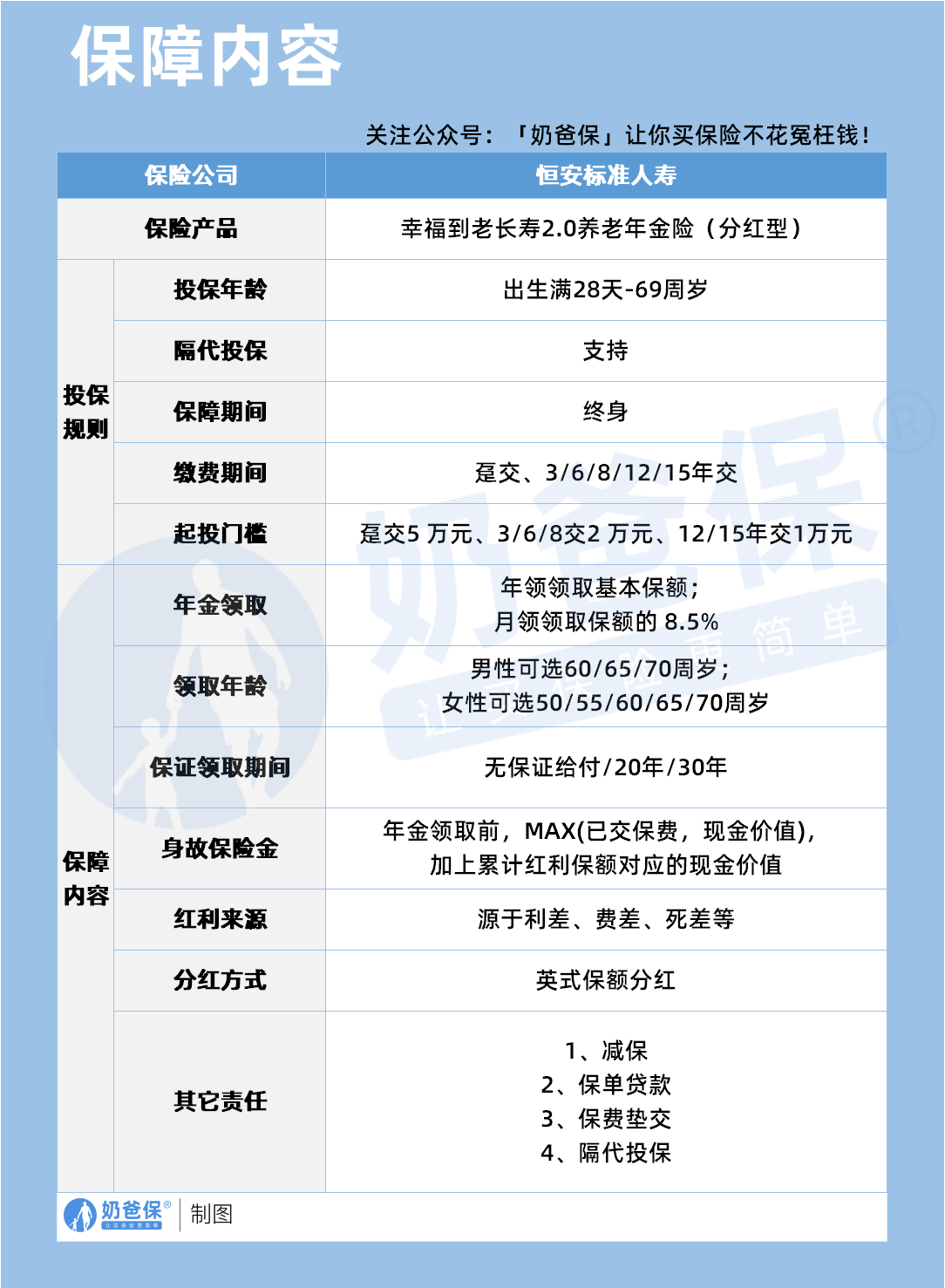 一、恒安标准幸福到老长寿2.0养老年金保险(分红型)保障如何?