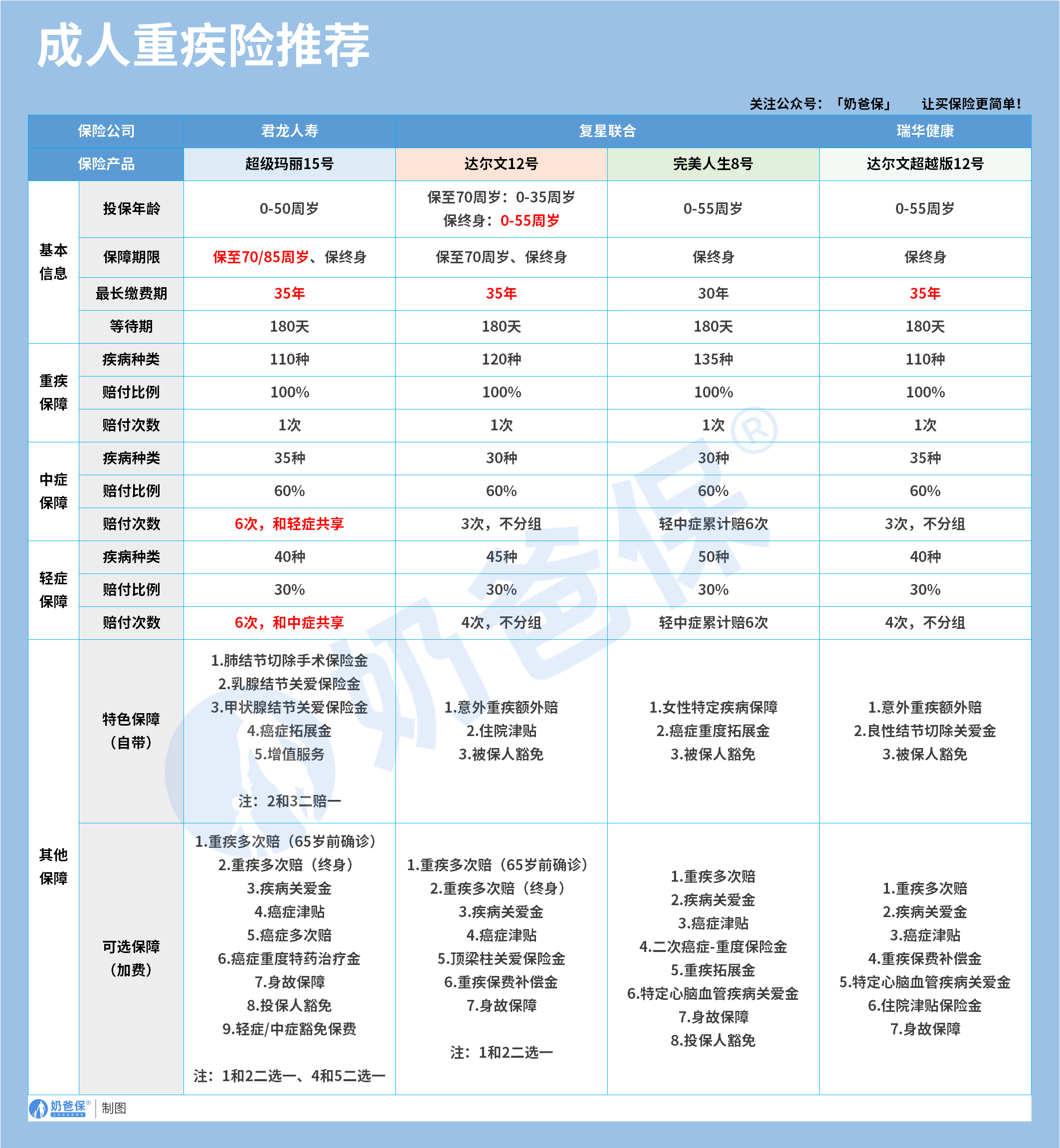 文中介绍的四款重疾险产品各有特色,覆盖了不同的保障需求和人群定位。