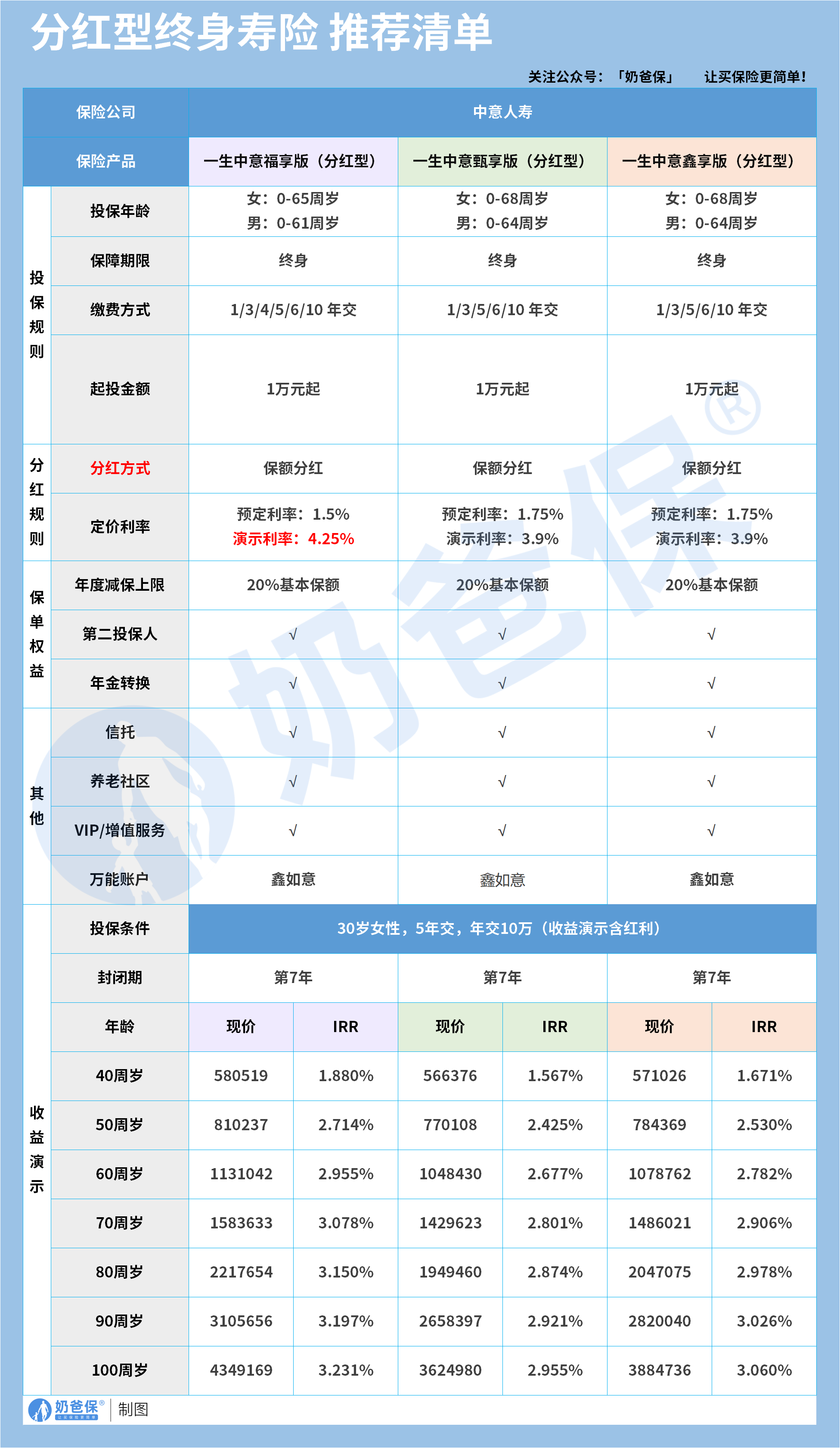 奶爸也给大家推荐几款目前值得选择的终身寿险产品: