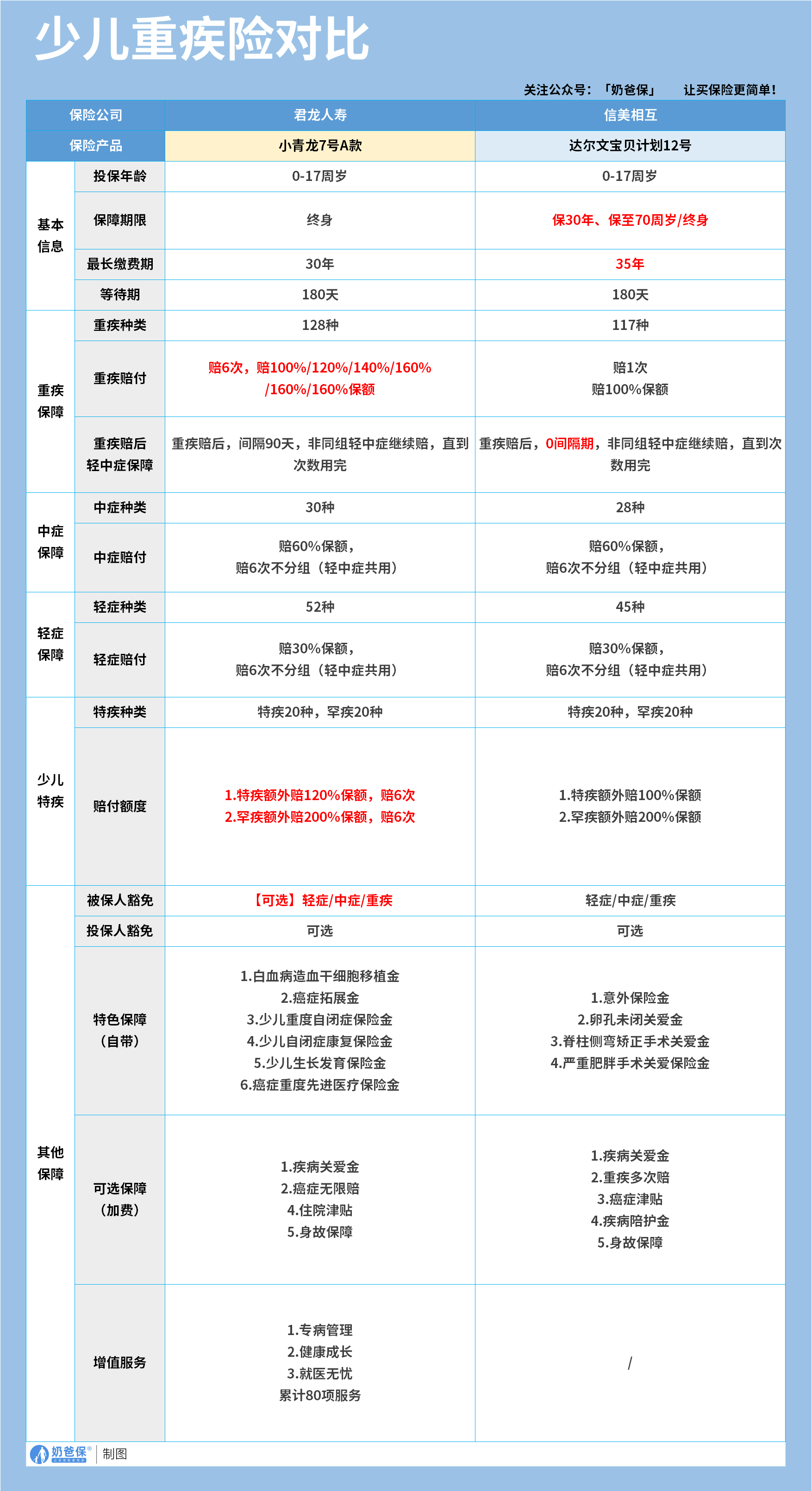 小青龙7号的特色保障则更侧重少儿高发重疾的深度防护: