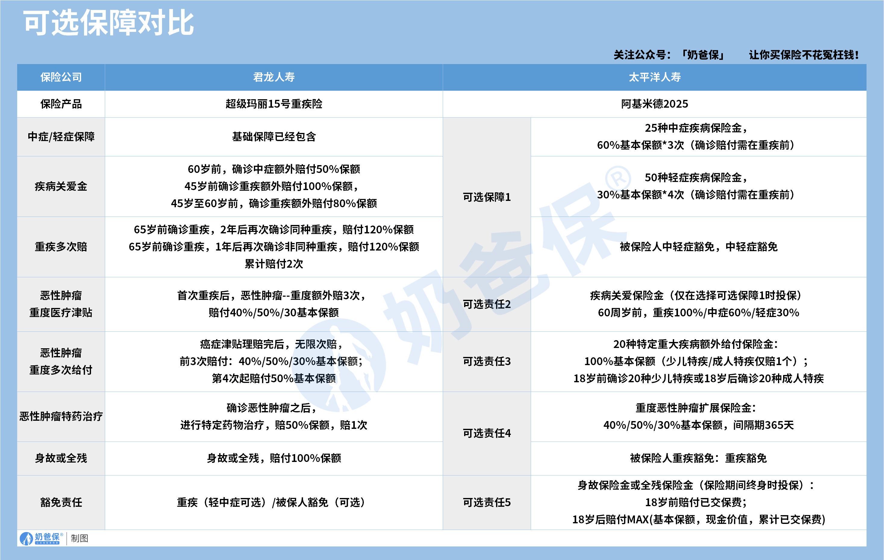 二、阿基米德重疾险2025对比超级玛丽15号,可选保障哪个更灵活?
