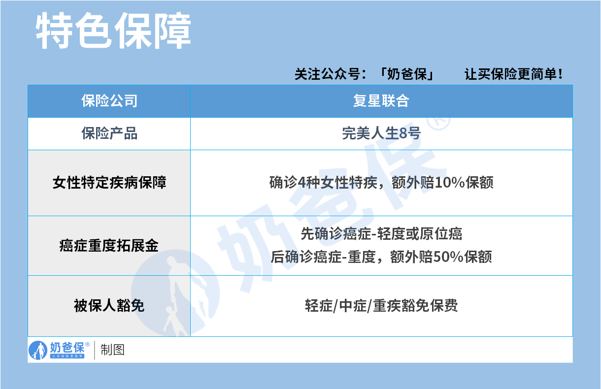 完美人生8号的基础保障体系,首先在投保规则上体现出对女性的友好。
