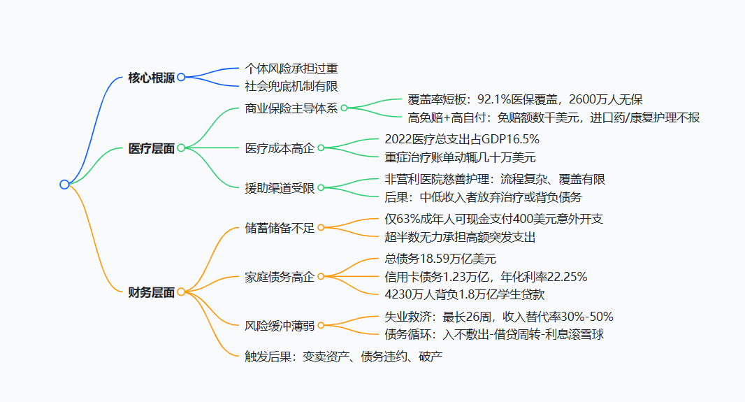 本质是个体风险承担过重与社会兜底机制有限共同作用的结果,