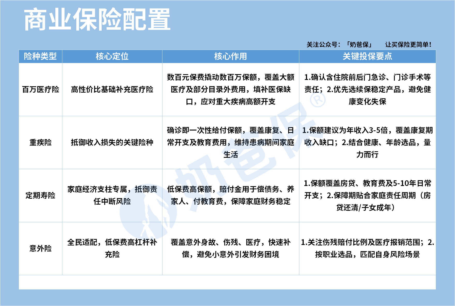 配置商保则是帮我们补全短板,让应对意外和疾病时更有底气,不用慌慌张张。