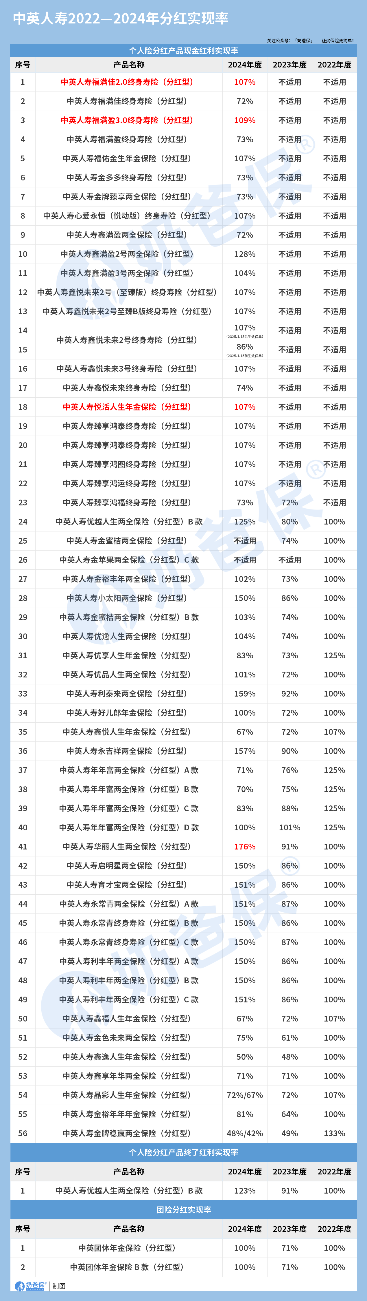 除了保司靠谱+产品预期收益高外,这几家保司分红实现率也非常不错: