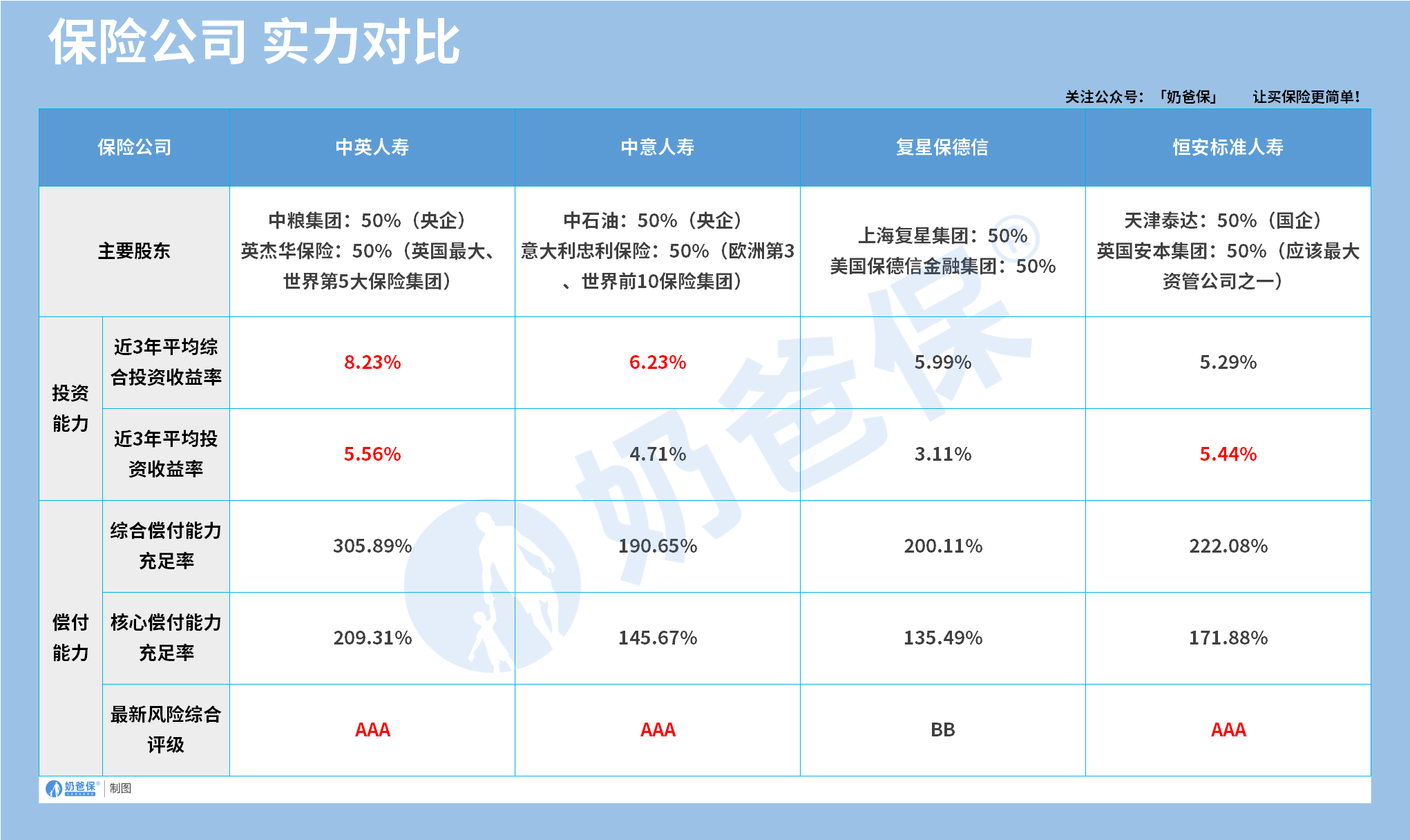 这几家保险公司,不管是股东实力,还是近3年投资能力,表现都非常不错。