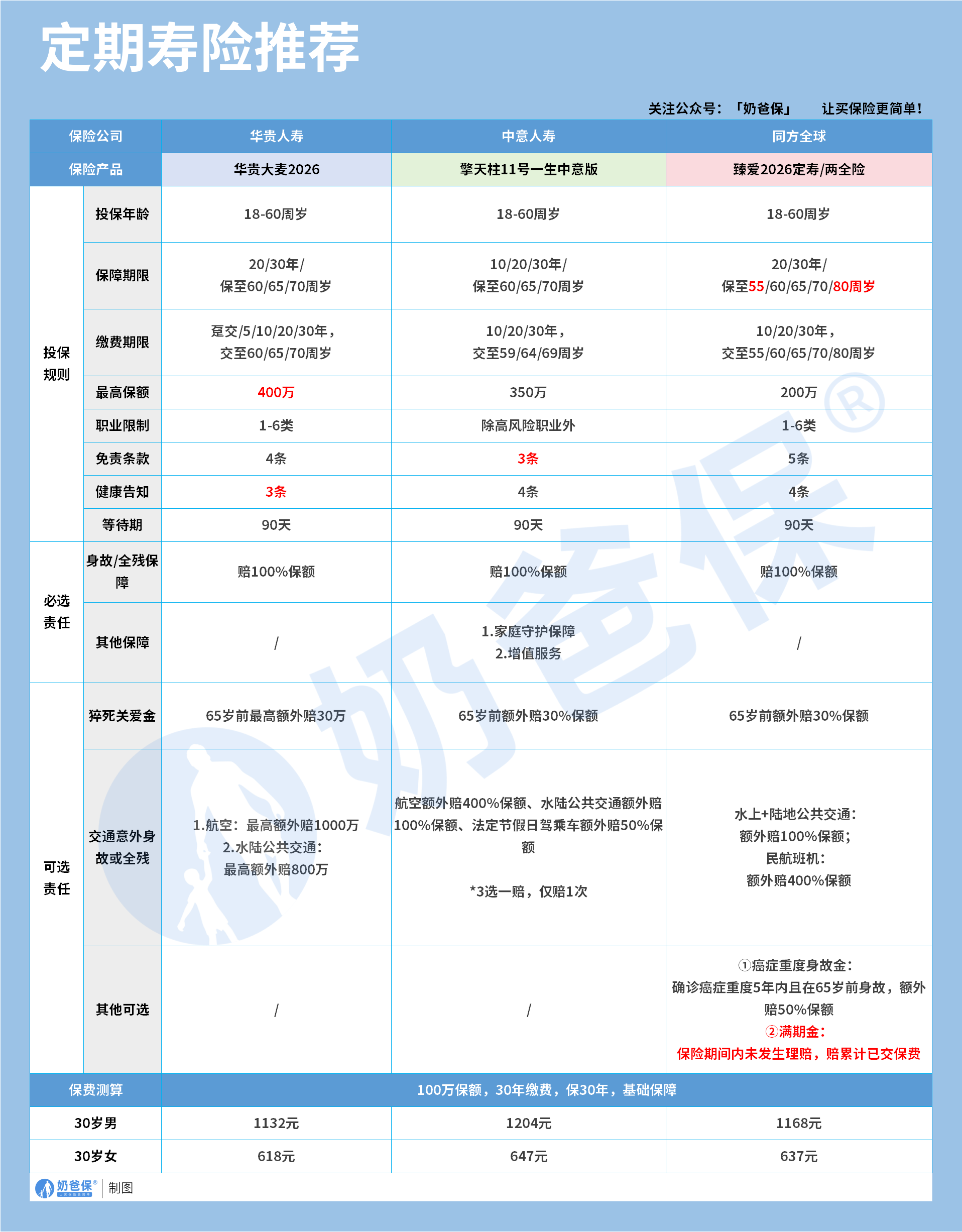 保20/30年,适合年轻人过渡;