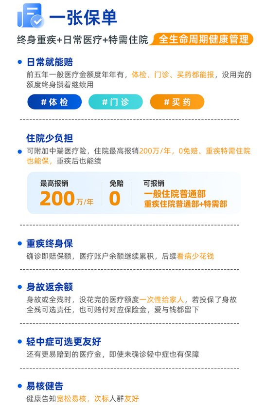 与重疾险形成互补,构建全方位医疗费用保障体系;