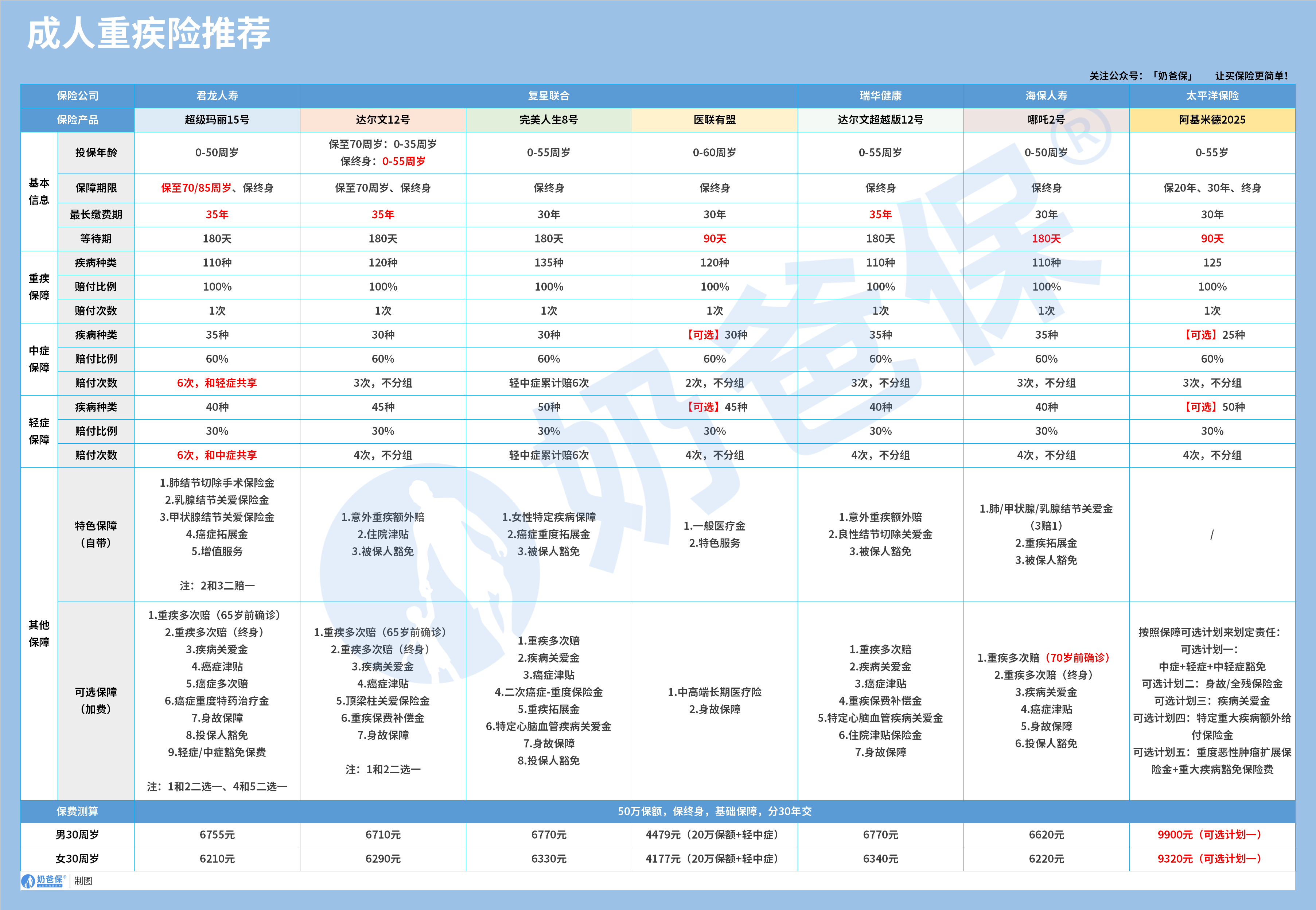 今天,奶爸就整理了7款闭眼入不踩坑的成人重疾险,