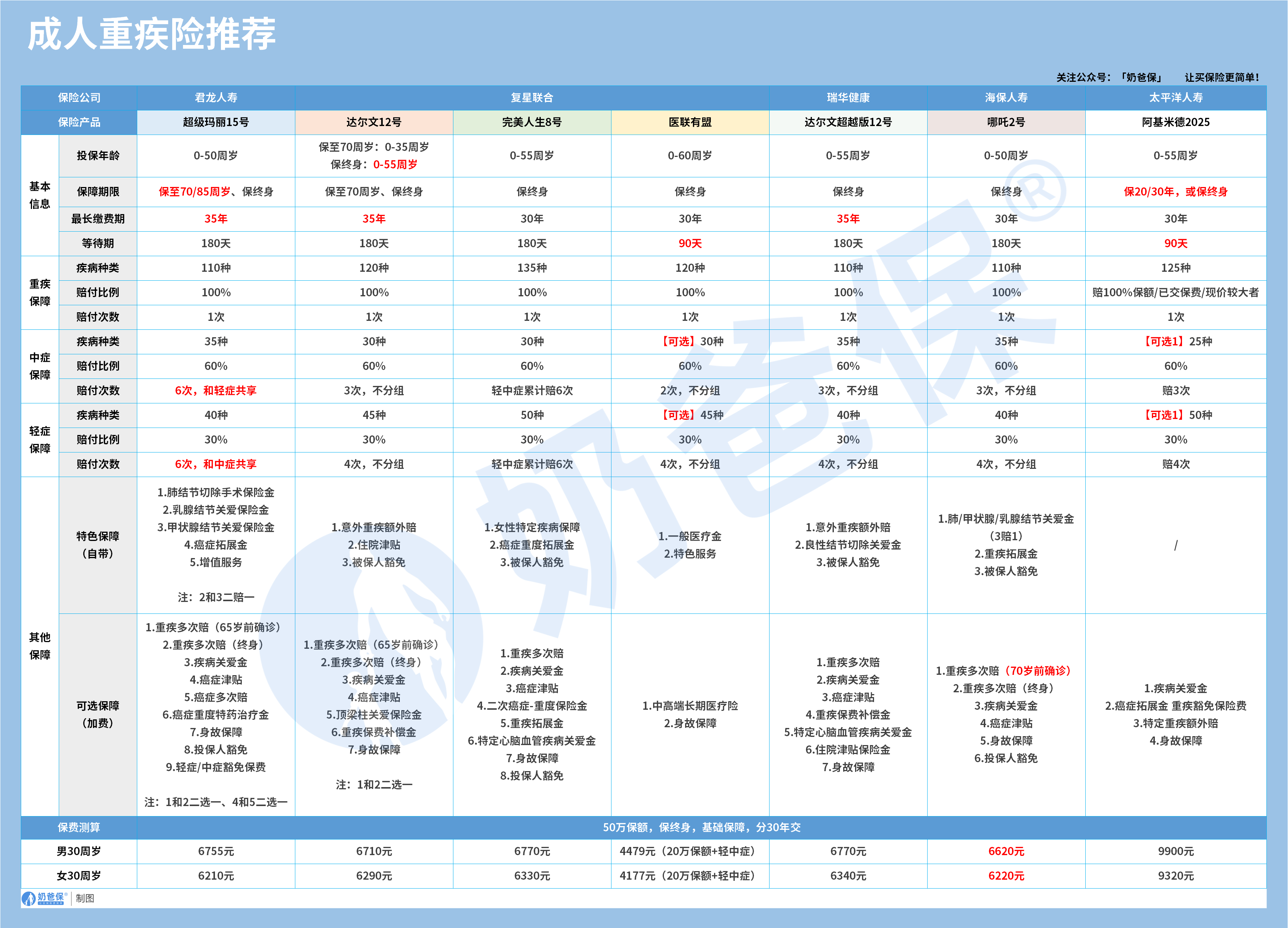 一、成人重疾险推荐榜单