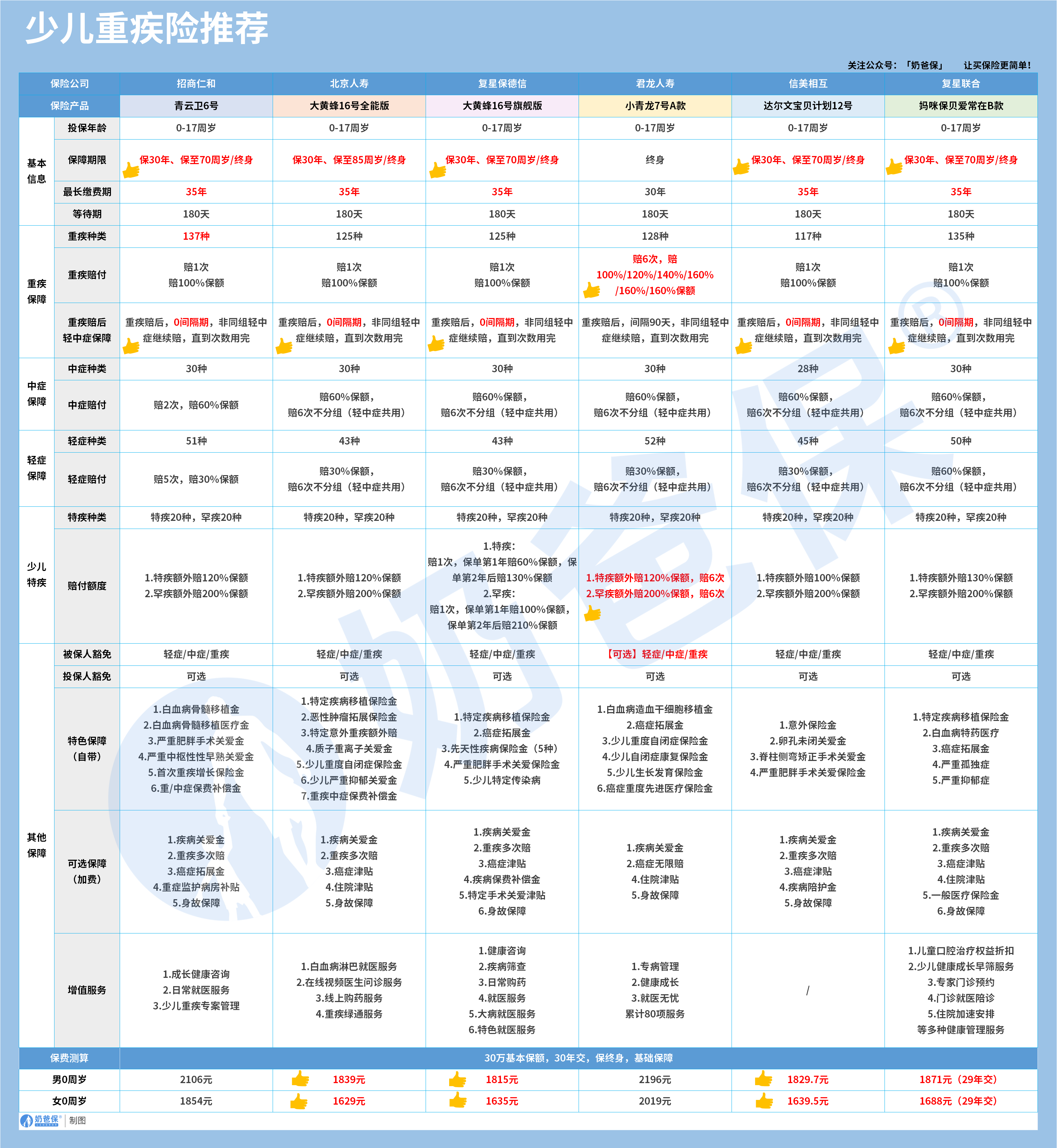 这几款都是目前高性价比的少儿重疾险,还自带部分特疾保障,