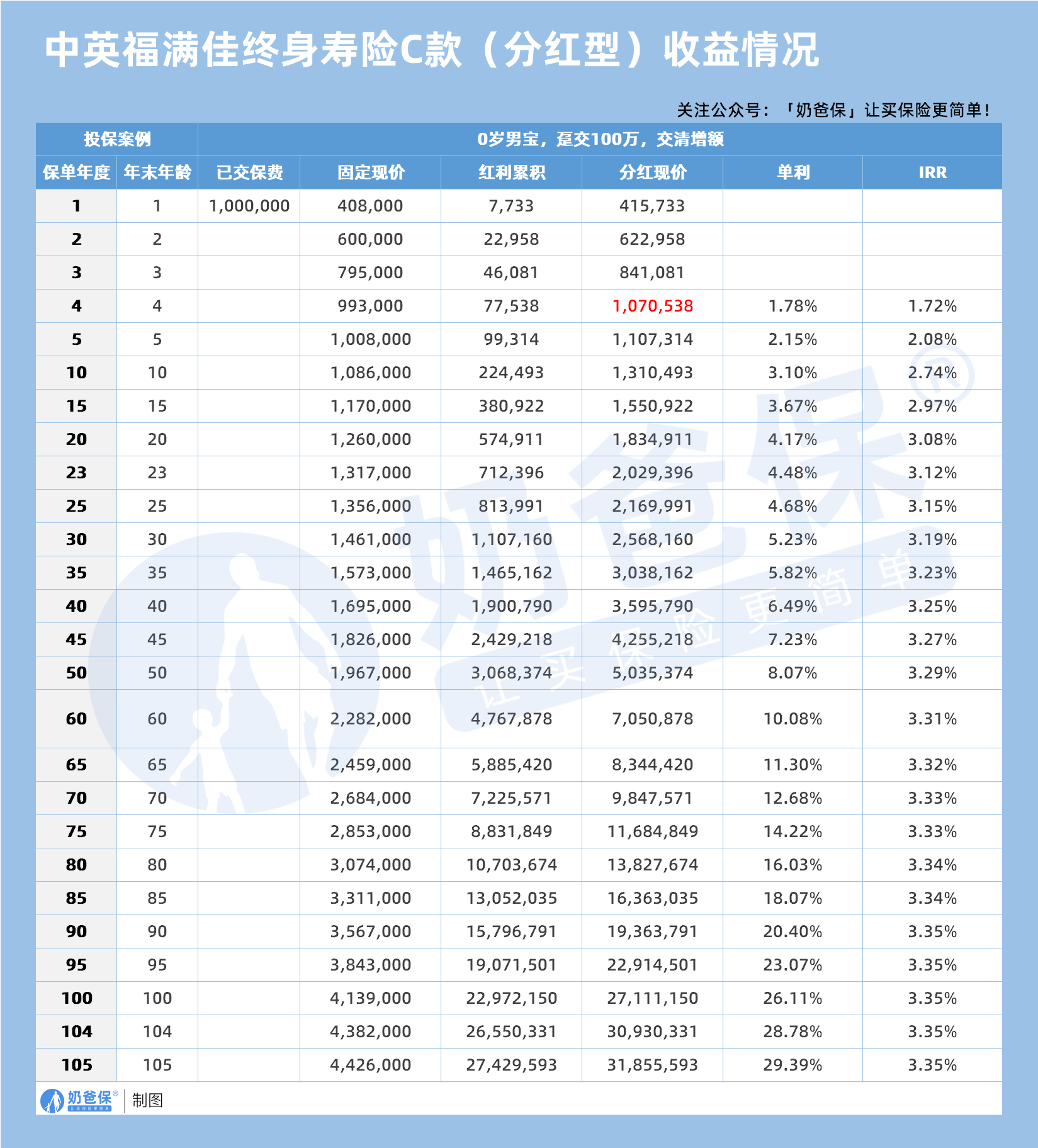 保单第10年,预期红利IRR>2%,市场少有,