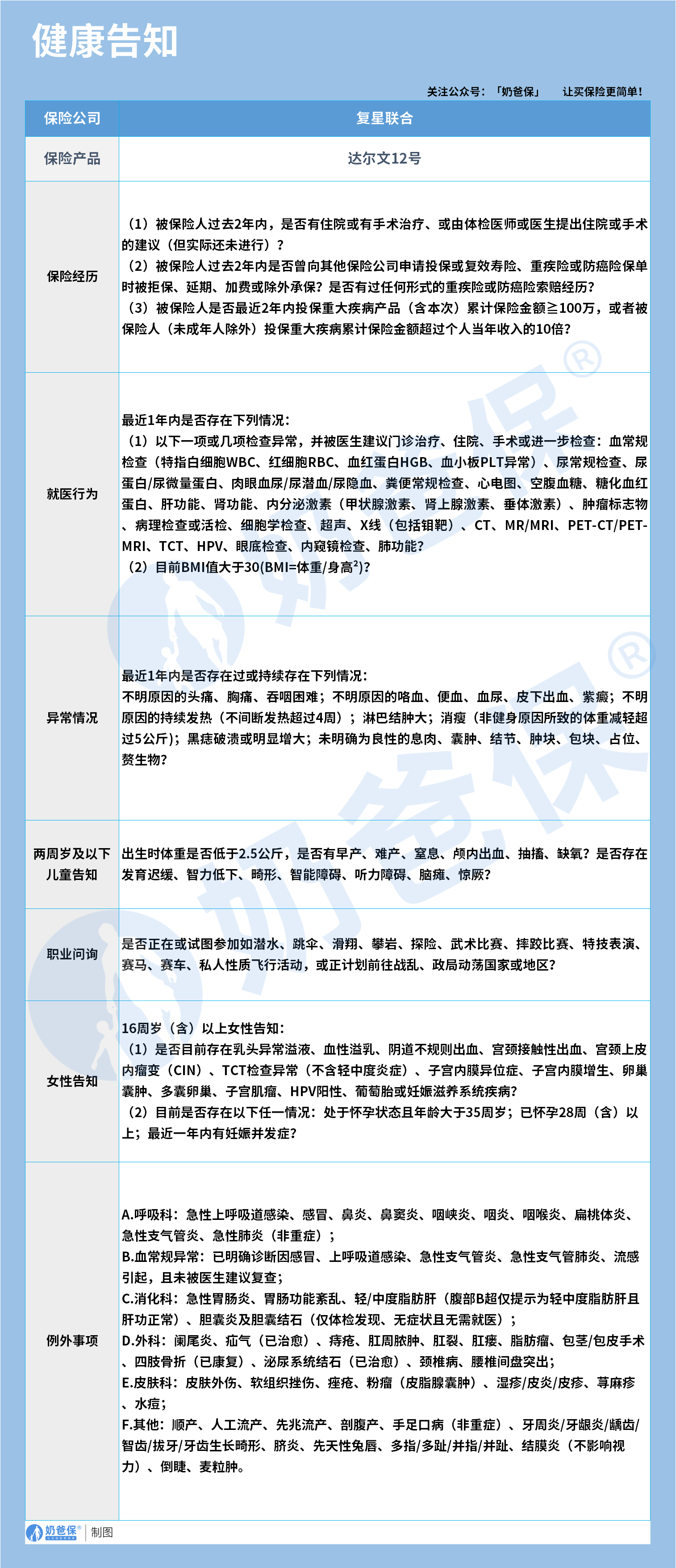 也关系到后续理赔会不会有纠纷。达尔文12号的健康告知整体属于中等偏严的水平,