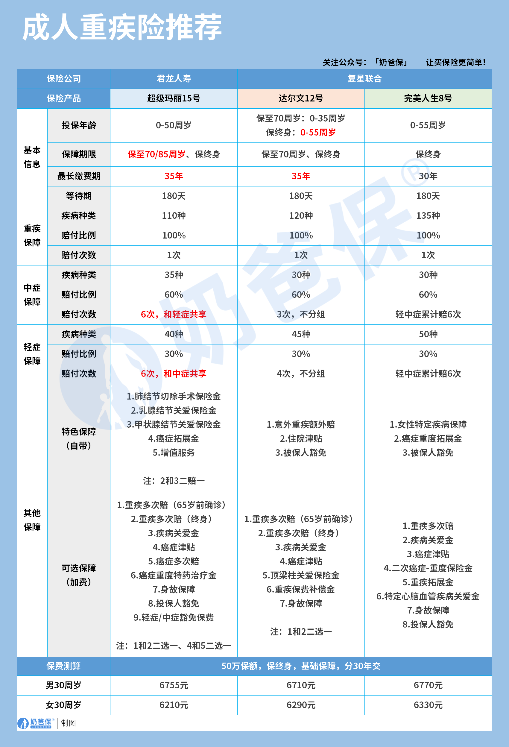 奶爸也给大家推荐几款优质的重疾险产品: