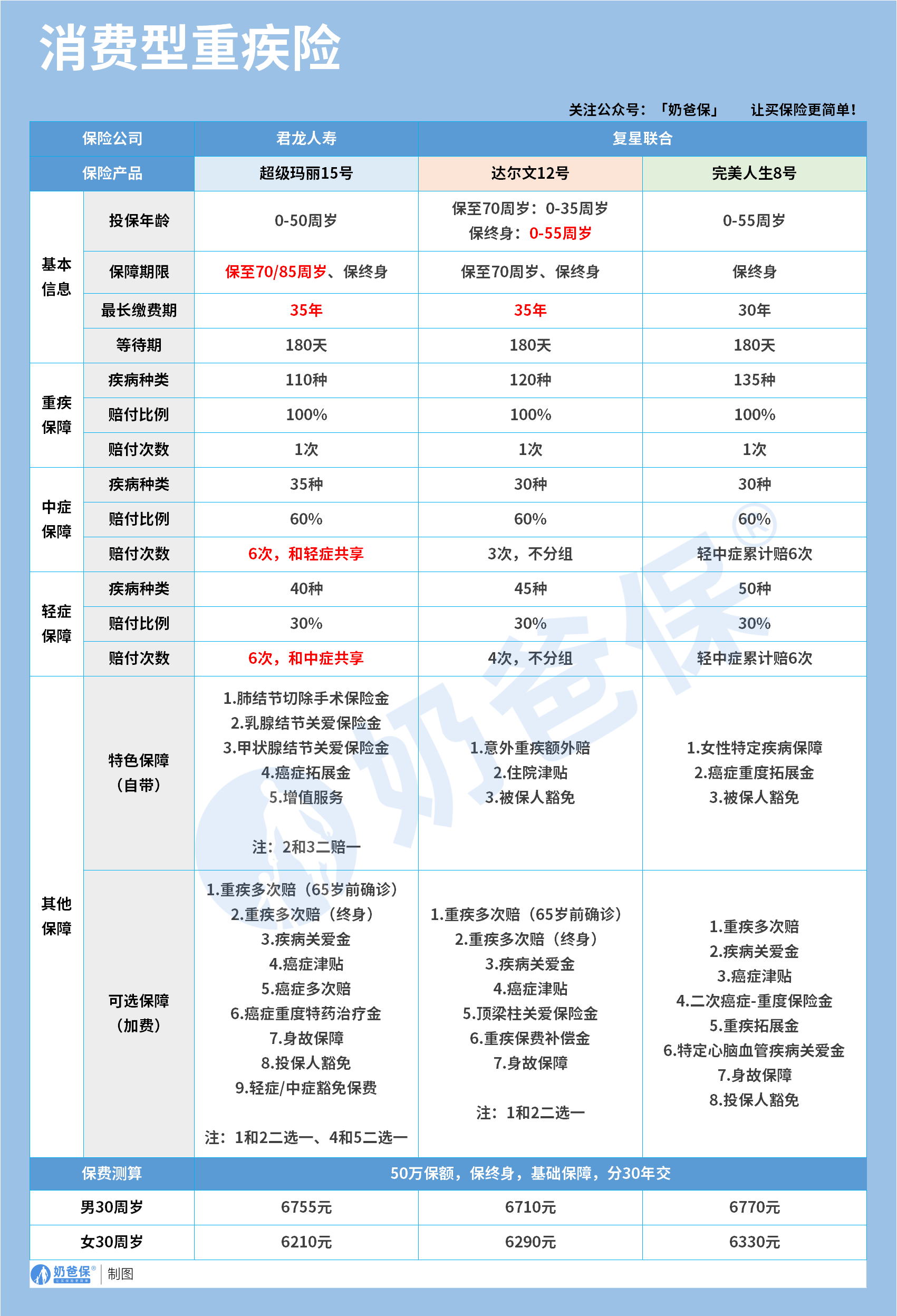 与储蓄型重疾险相比,同样的保额和保障期限,消费型重疾险的保费可能只有前者的一半甚至更低,这对于预算有限但又需要高额保障的年轻人来说,无疑是更优的选择。