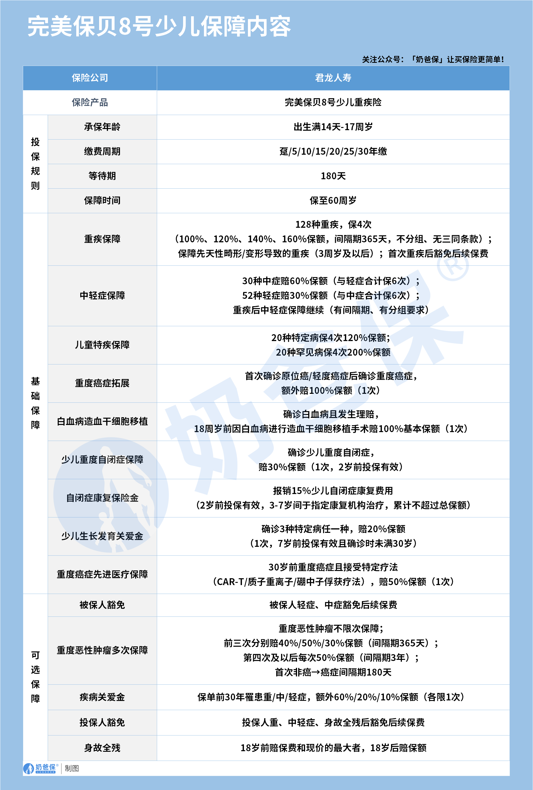 一、君龙人寿完美保贝8号重疾险保障怎么样?孩子投保合适吗?