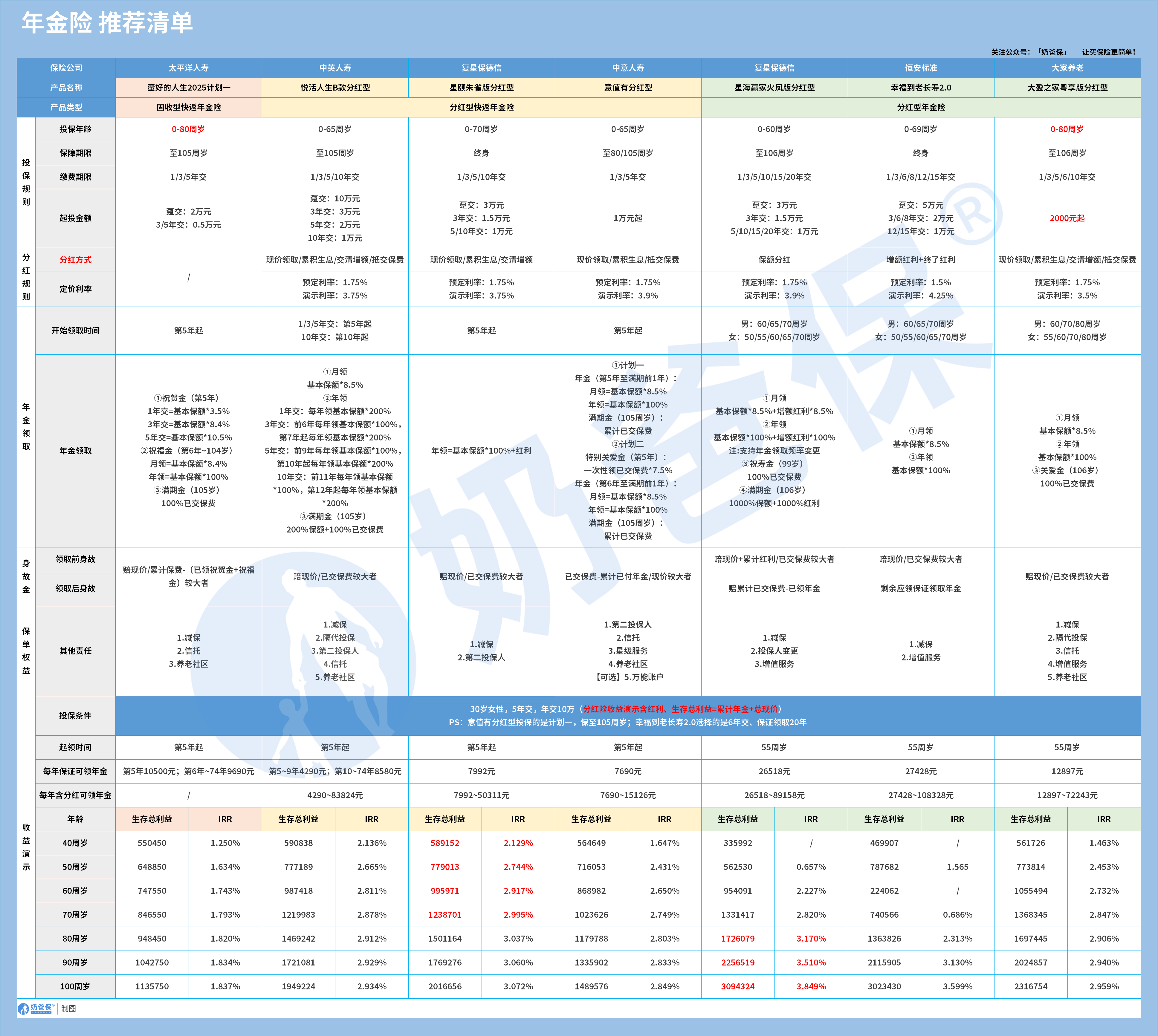 奶爸也汇总了几款优质的年金险产品: