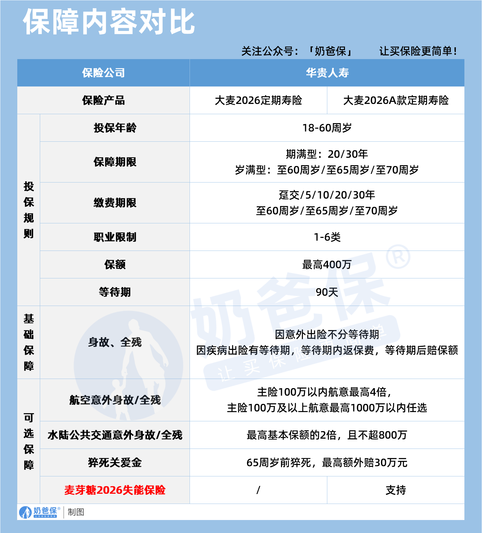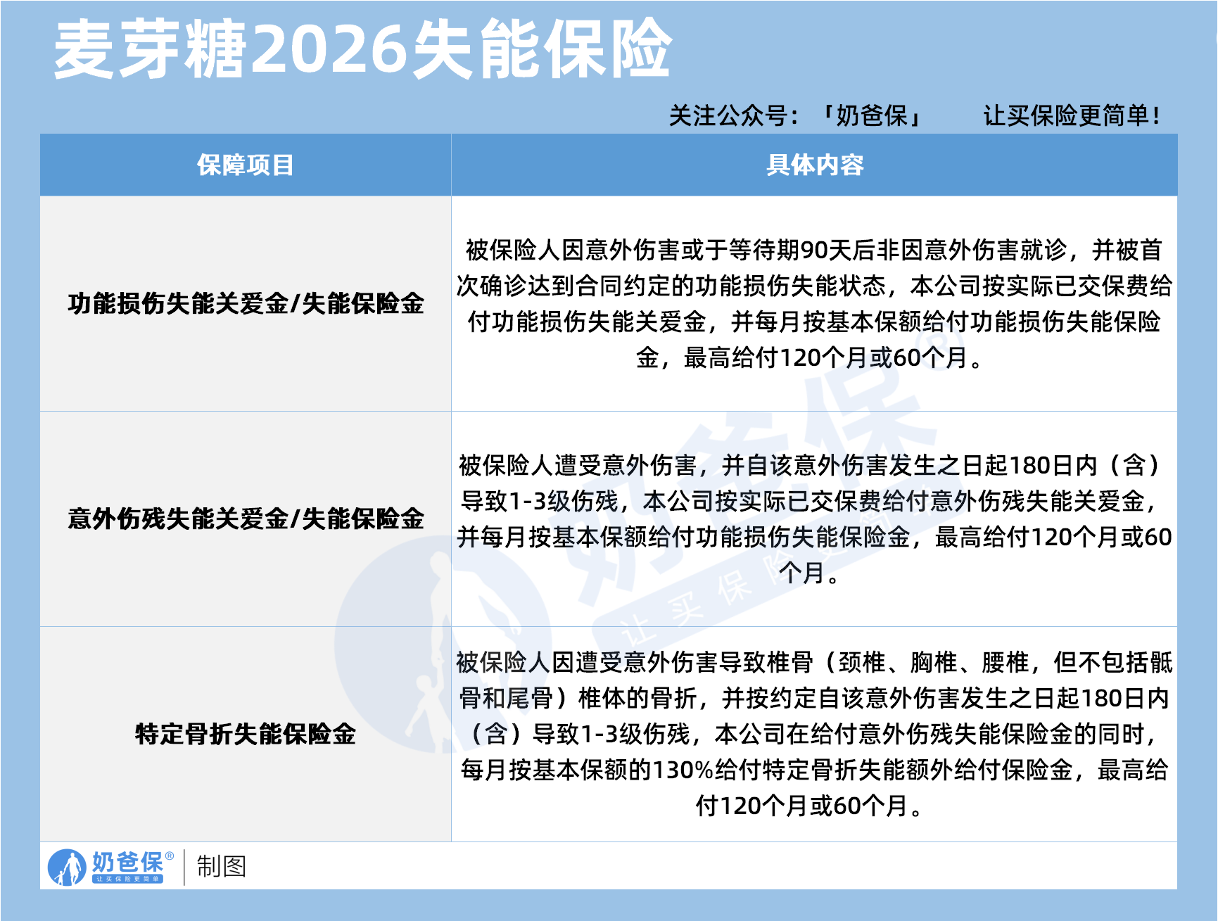 可以说,麦芽糖2026失能保险的搭配,让大麦2026A款从单纯的“身故全残保障”,升级为覆盖“身故、全残、失能”的全维度风险保障体系,
