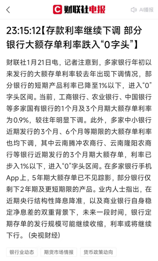 存款利率继续下调,连部分银行大额存单利率跌入“0字头”,