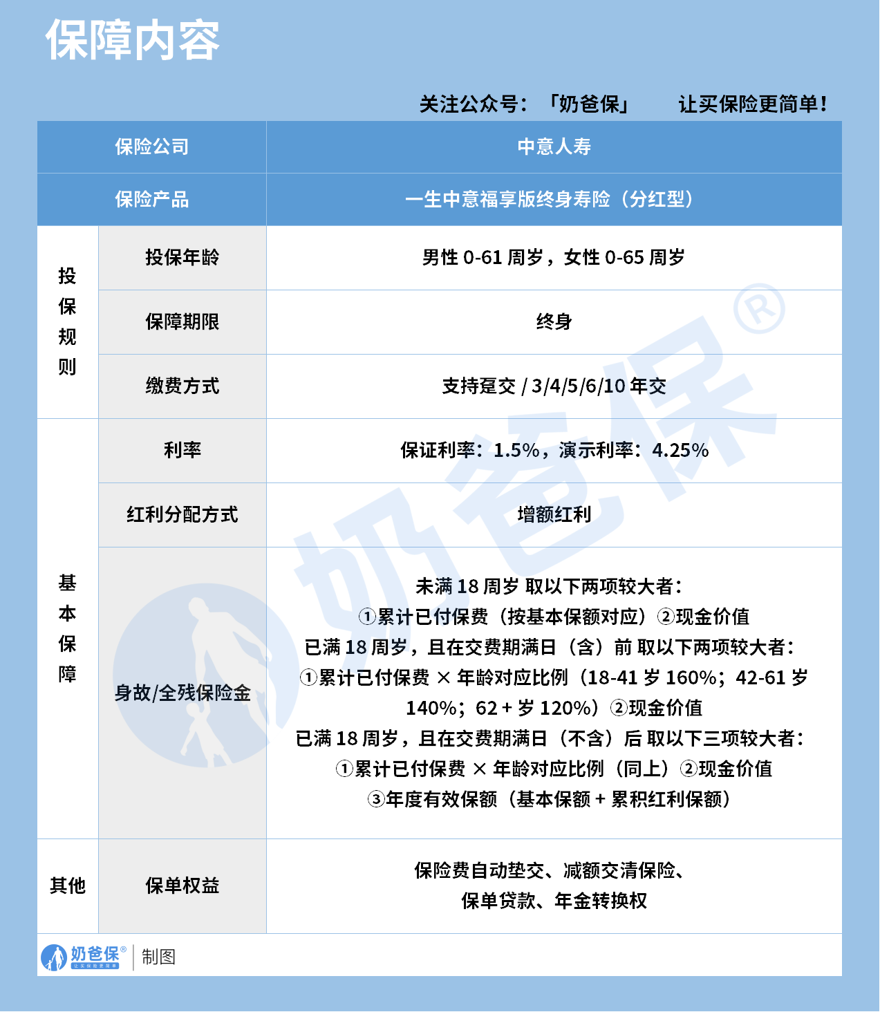 保障期限是终身,不管是给孩子做教育金,还是给自己做养老金,都能适配。