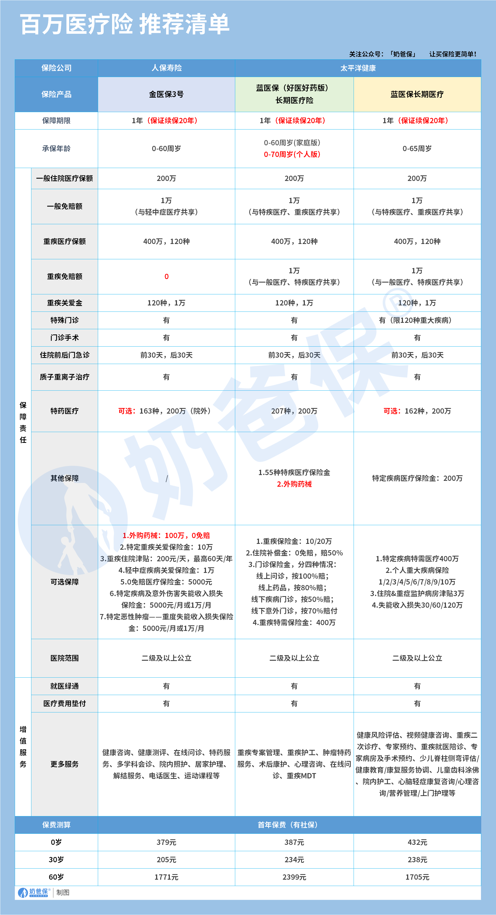 这三款产品都保证续保 20 年,保障全面,性价比高,是目前市场的优质选择。