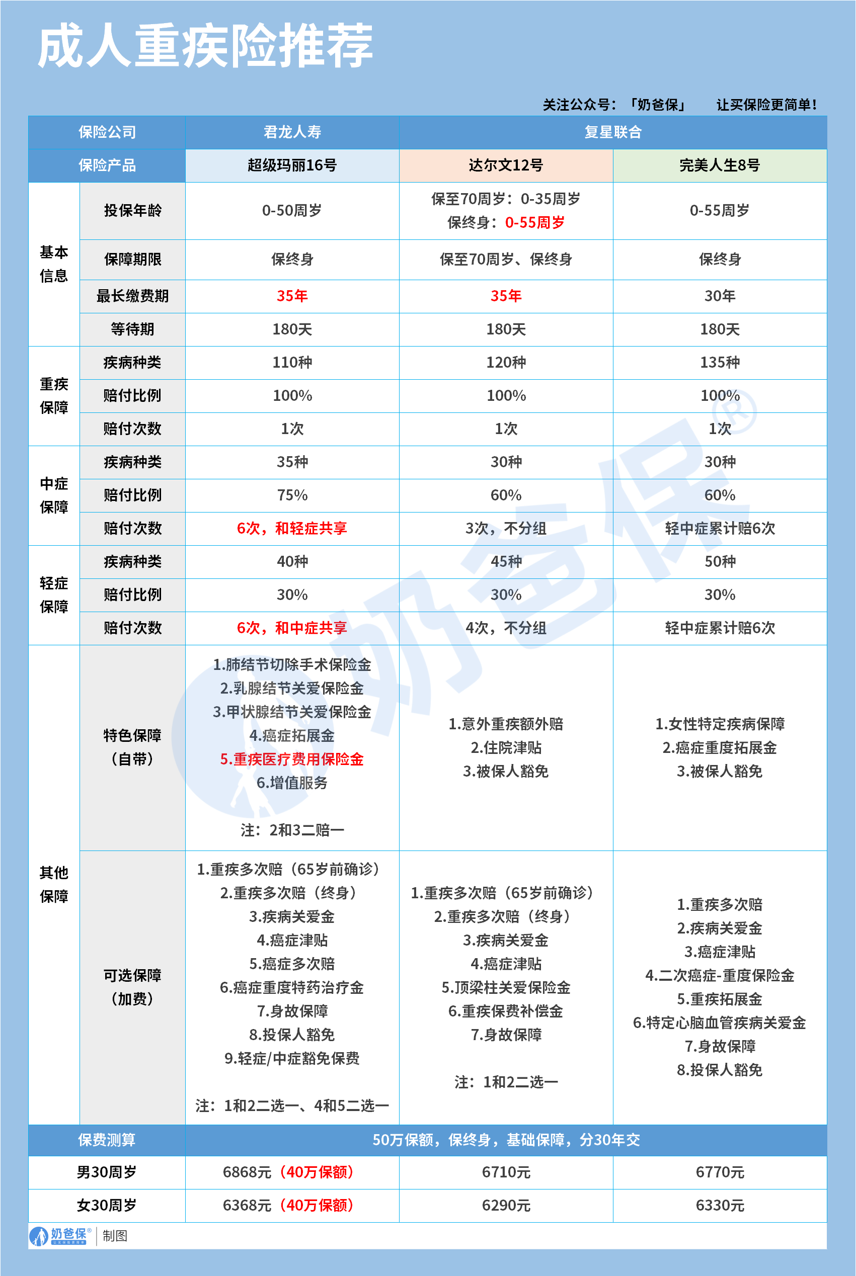 奶爸也给大家推荐几款优质的重疾险产品: