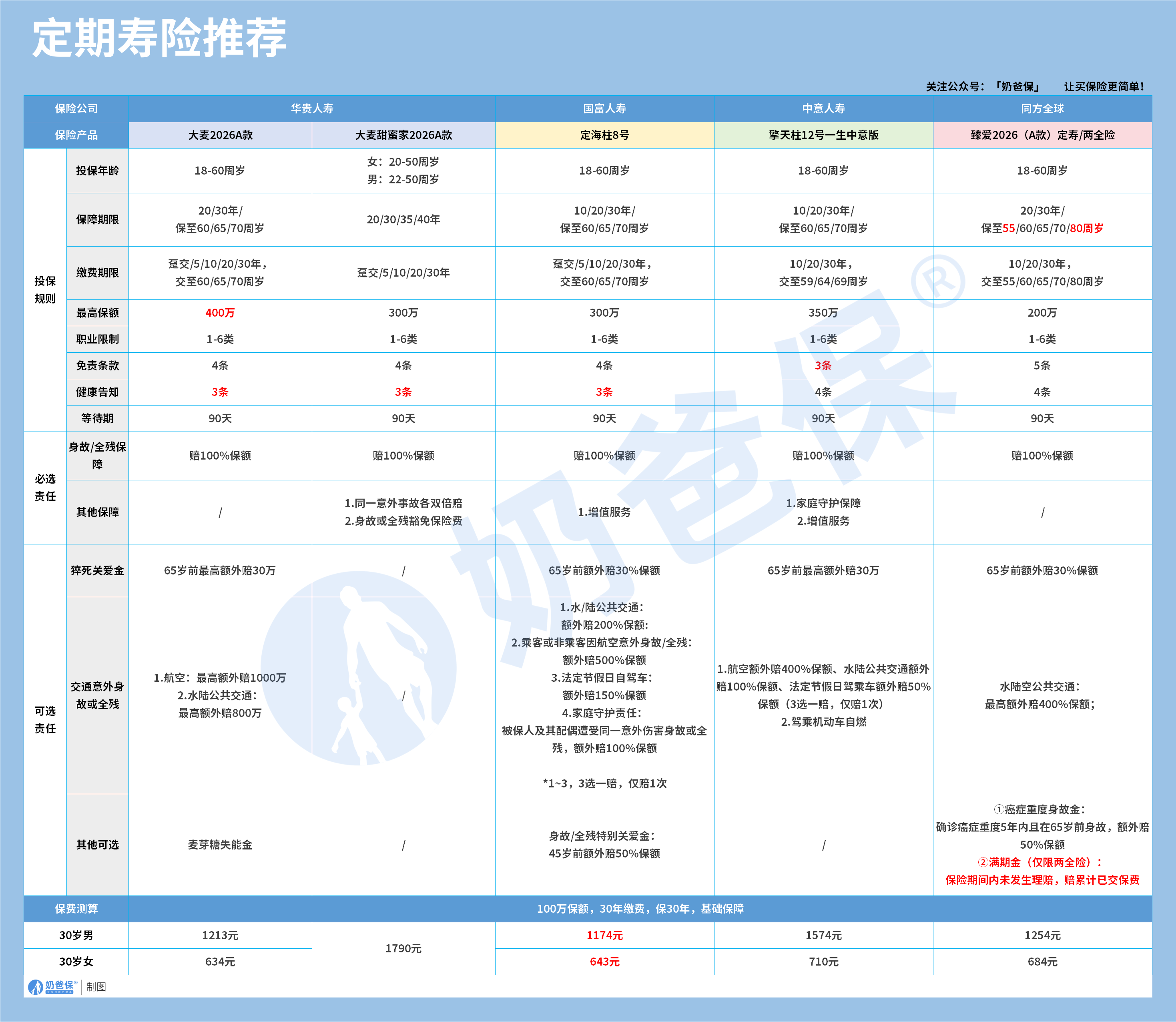 寿险中性价比最高的类型,适合家庭经济支柱配置,我们筛选出五款优质产品。