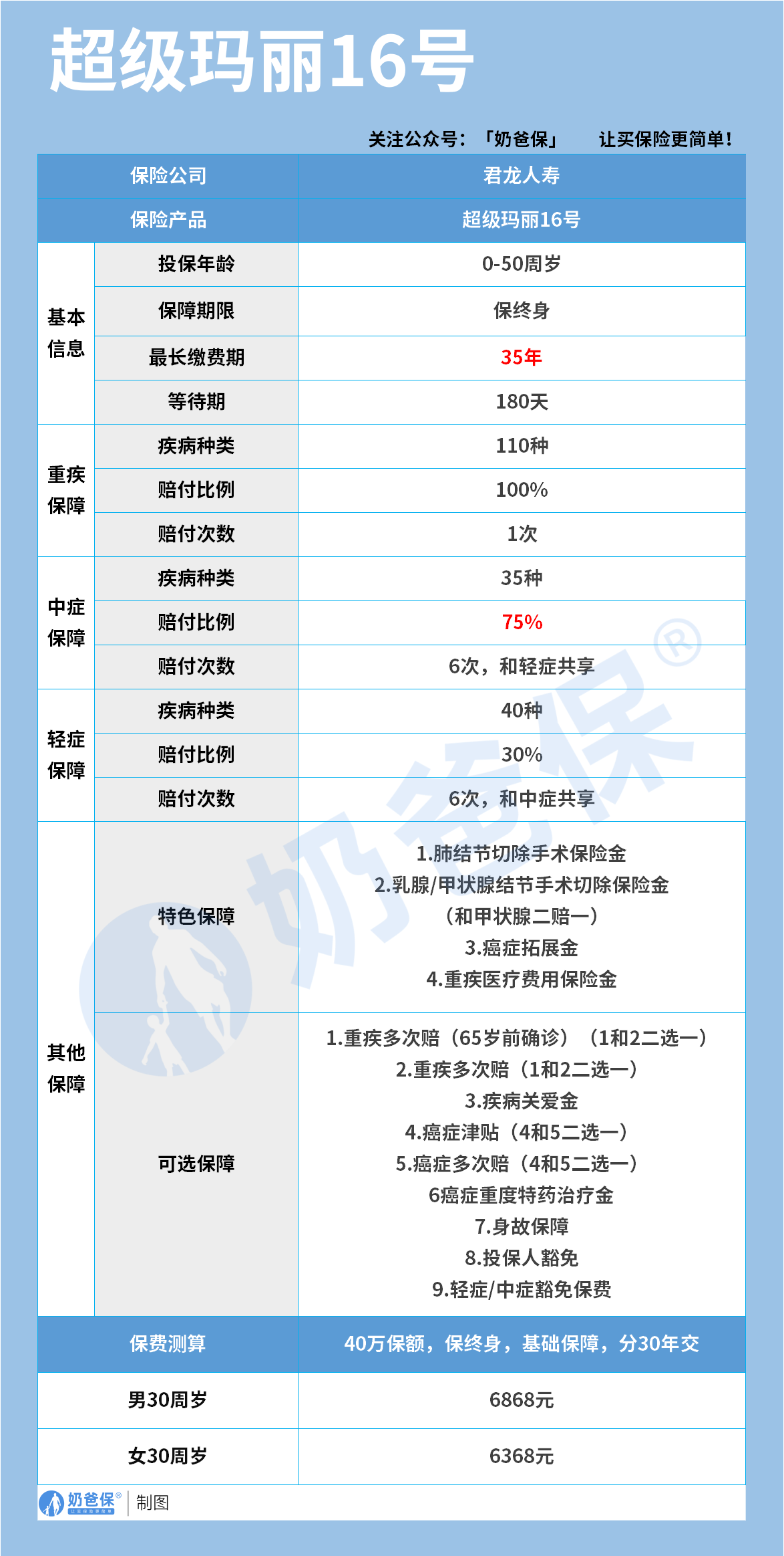 超级玛丽16号出自君龙人寿,关于保司介绍,你可以戳这里查看。