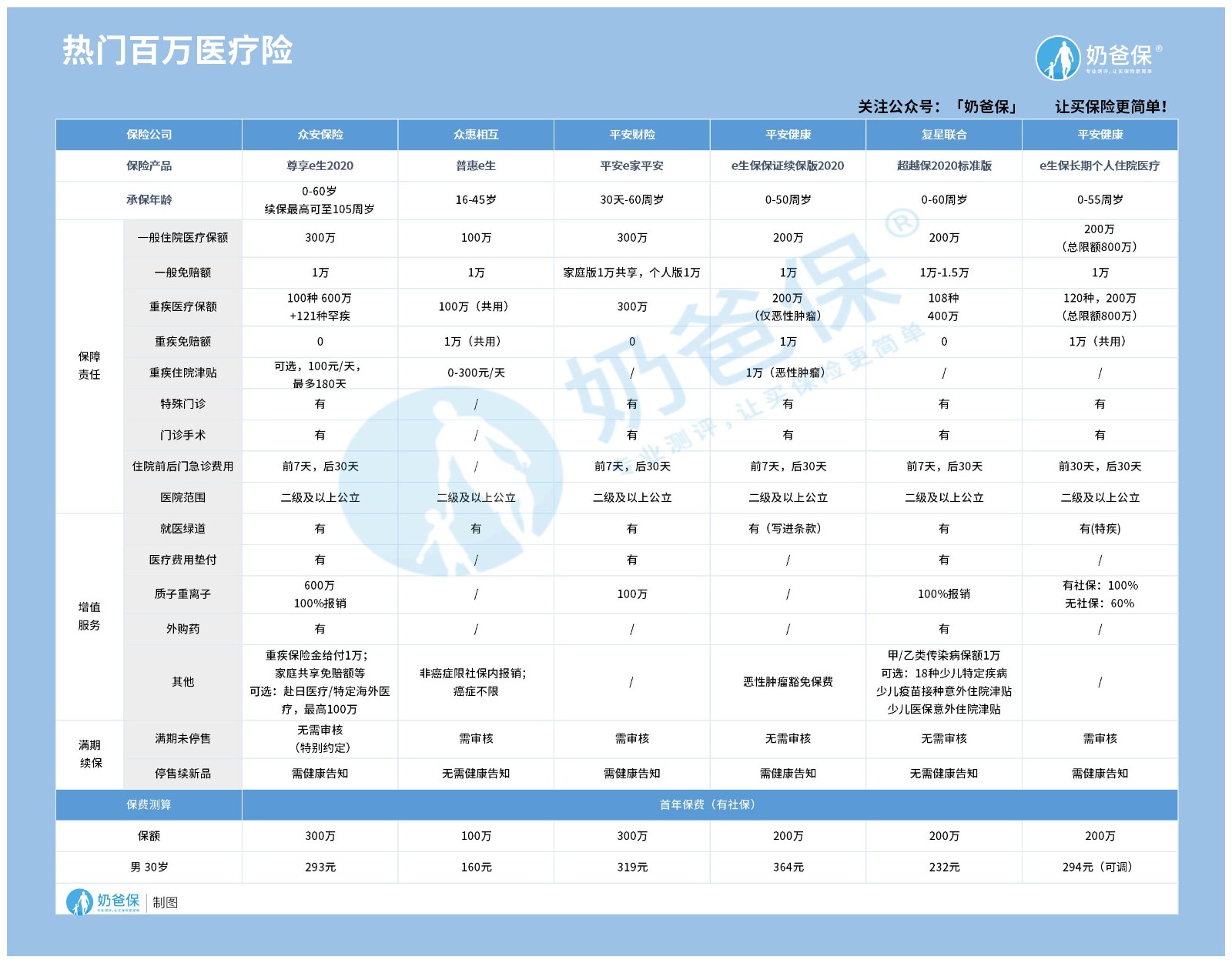 为了便于大家对百万医疗险保障内容的了解,奶爸做了一张对比表。