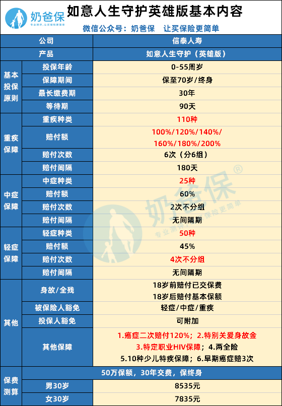 关于如意人生守护英雄版详细的保障内容,小伙伴们先看看下面这张图: