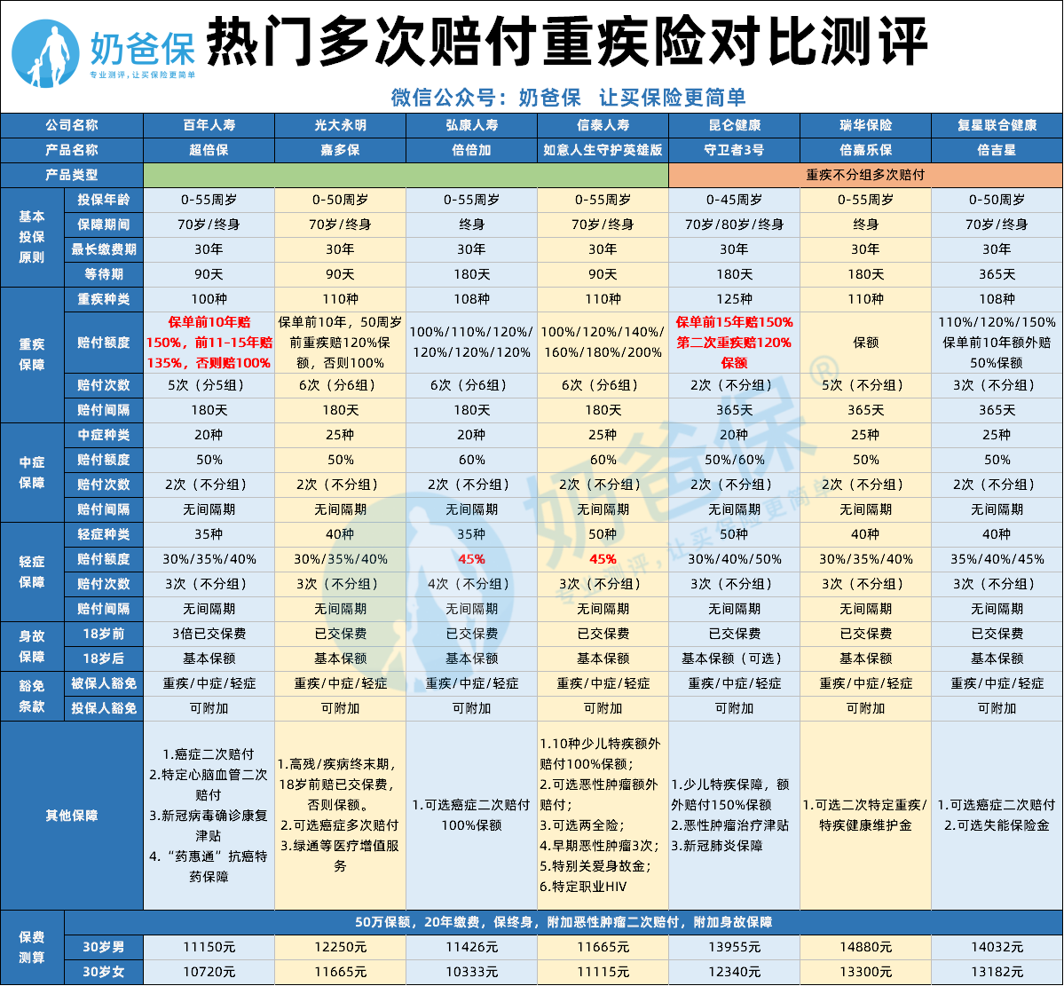 奶爸挑选了分组多次赔的产品,跟不分组多次赔的产品进行对比: