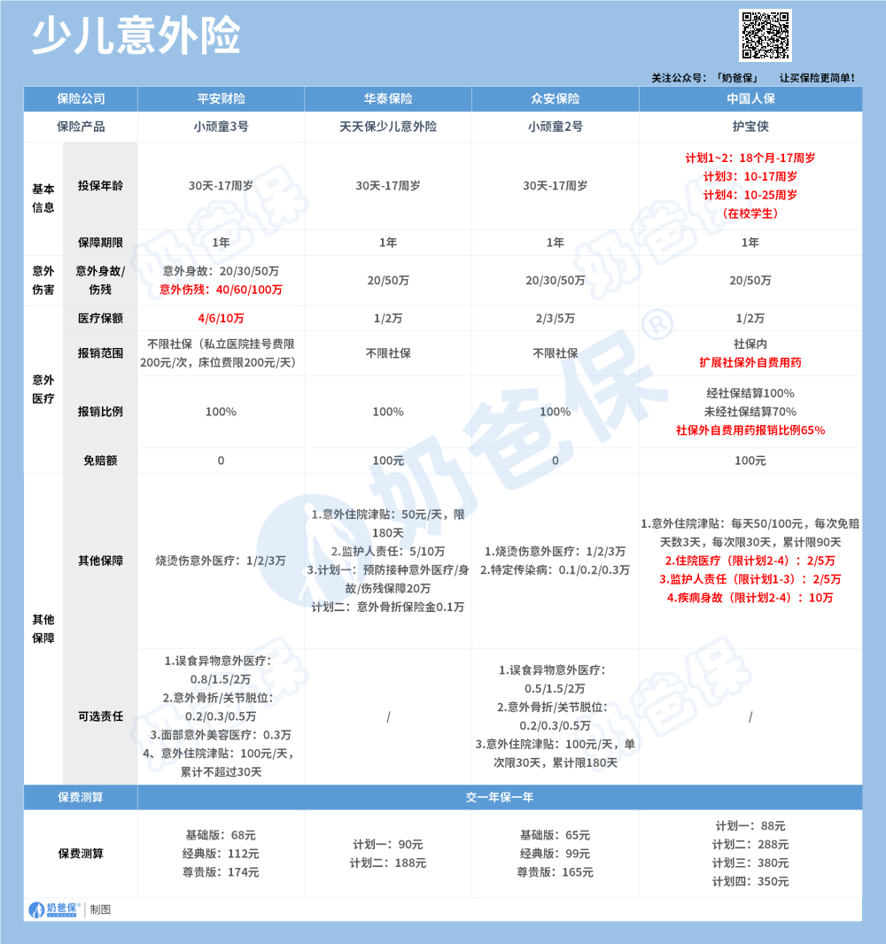 这款产品比较适合追求更充足的意外医疗保障,较为全面的少儿高发意外保障的父母。