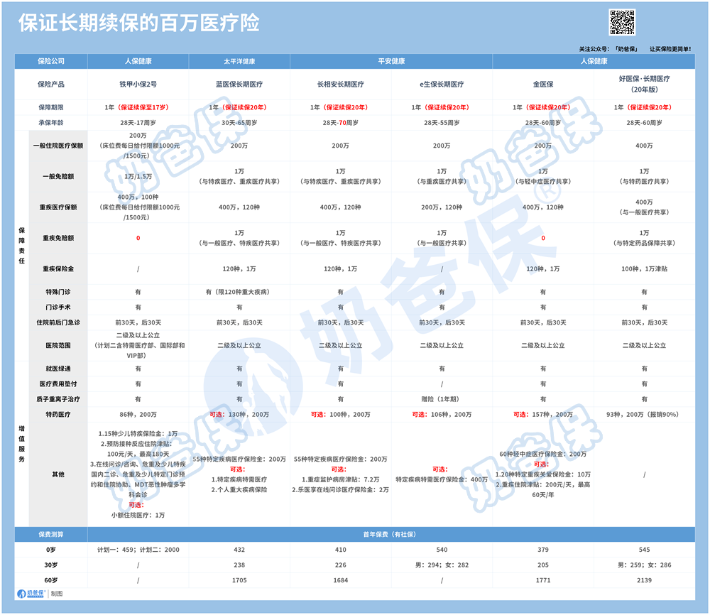 奶爸也从几个维度来帮助大家挑选能保20年的百万医疗险: