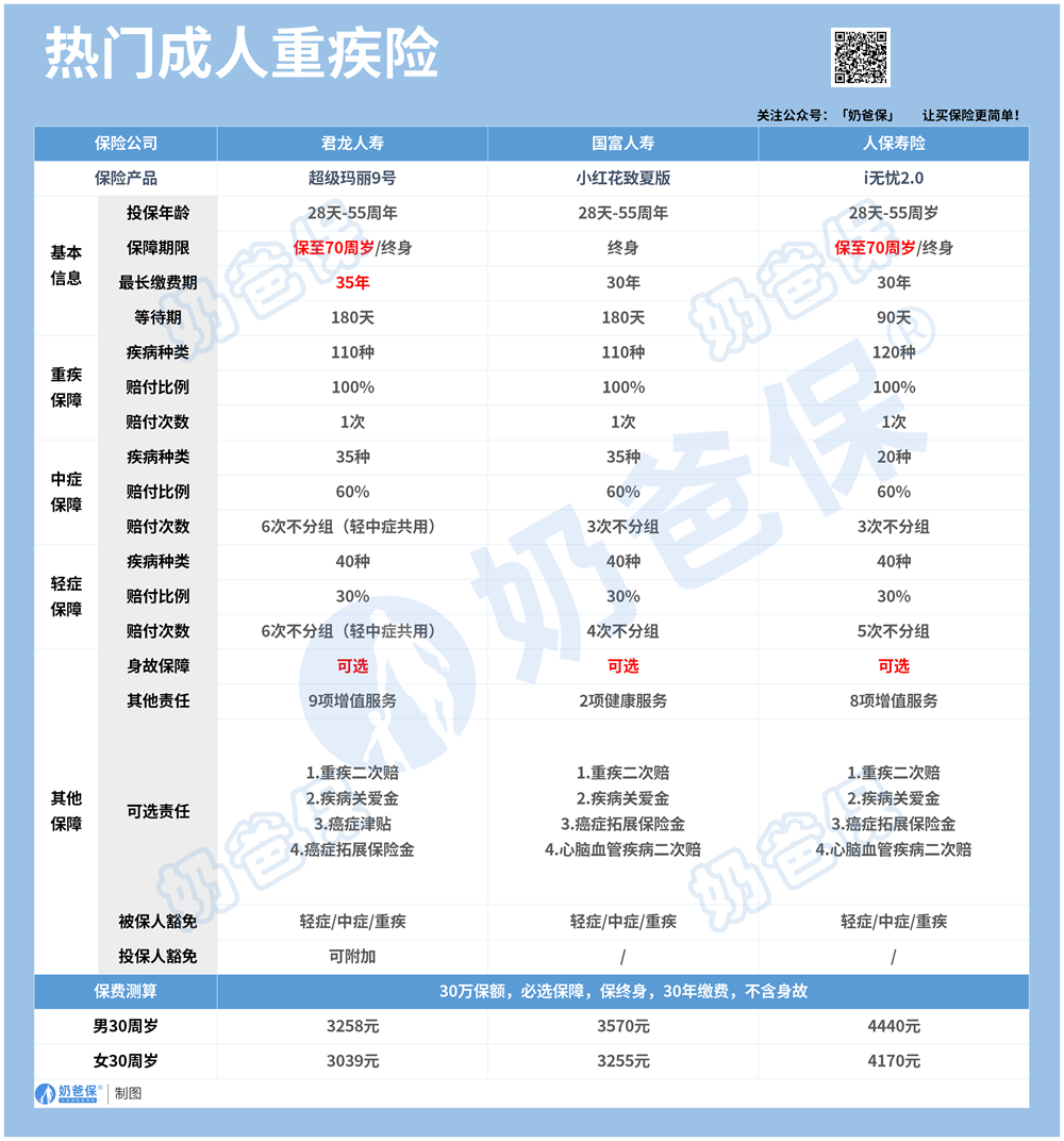 奶爸也整理了几款比较热门的成人重疾险,大家也可以参考一下: