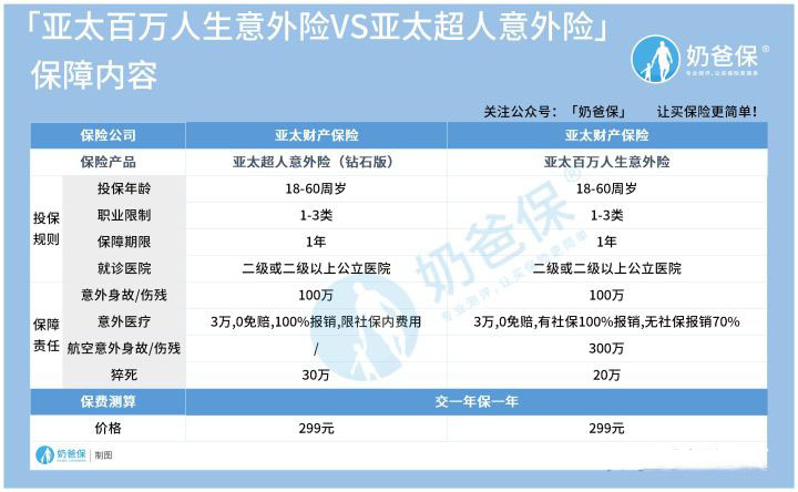 01亚太百万人生意外险对比亚太超人意外险