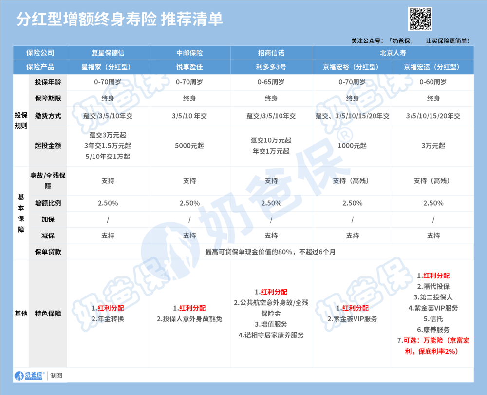 这位朋友你好,关于增额终身寿险哪家公司最好,想买分红型的产品怎么挑选这个问题,奶爸在这里整理了有关增额终身寿险的相关内容,希望对你有帮助: