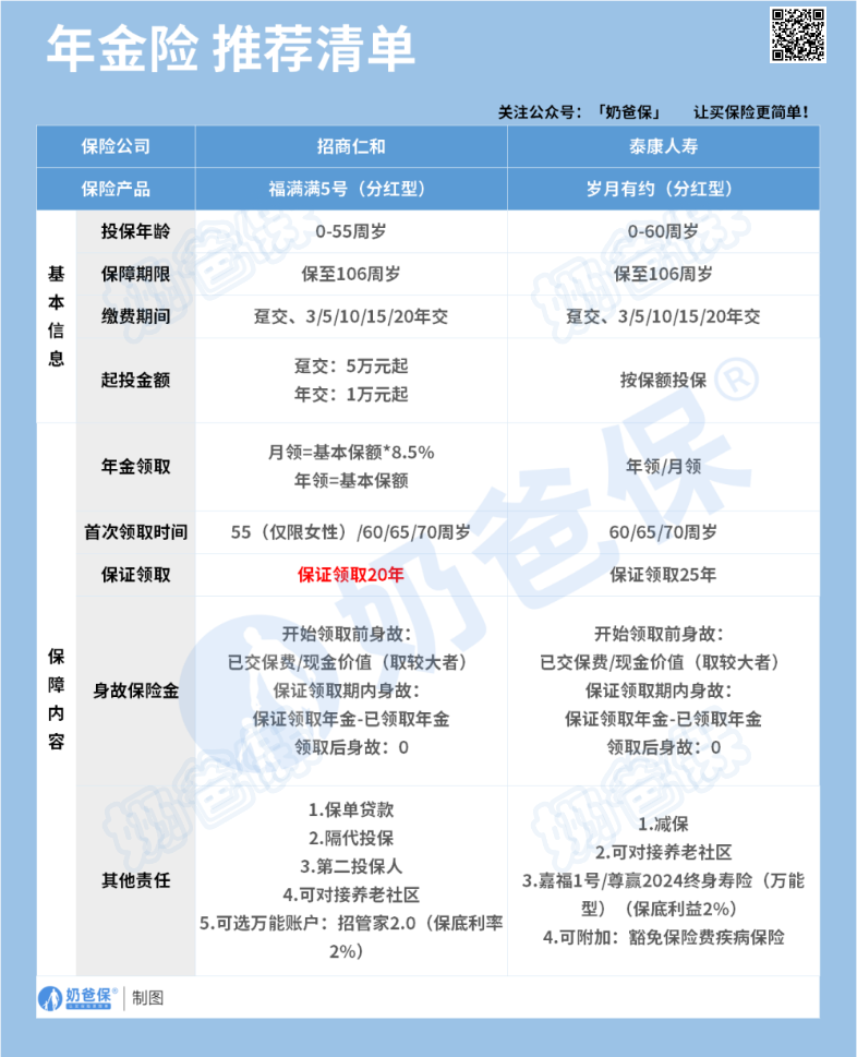 接下来奶爸将为您推荐两款优质的养老年金保险分红型产品: