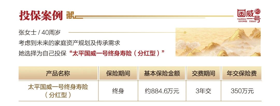 太平国威一号终身寿险(分红型)是太平人寿推出的长期资产规划类产品,核心亮点围绕 “保障稳、增值活、功能全” 展开,适配家庭资产传承、长期财富储备的需求: