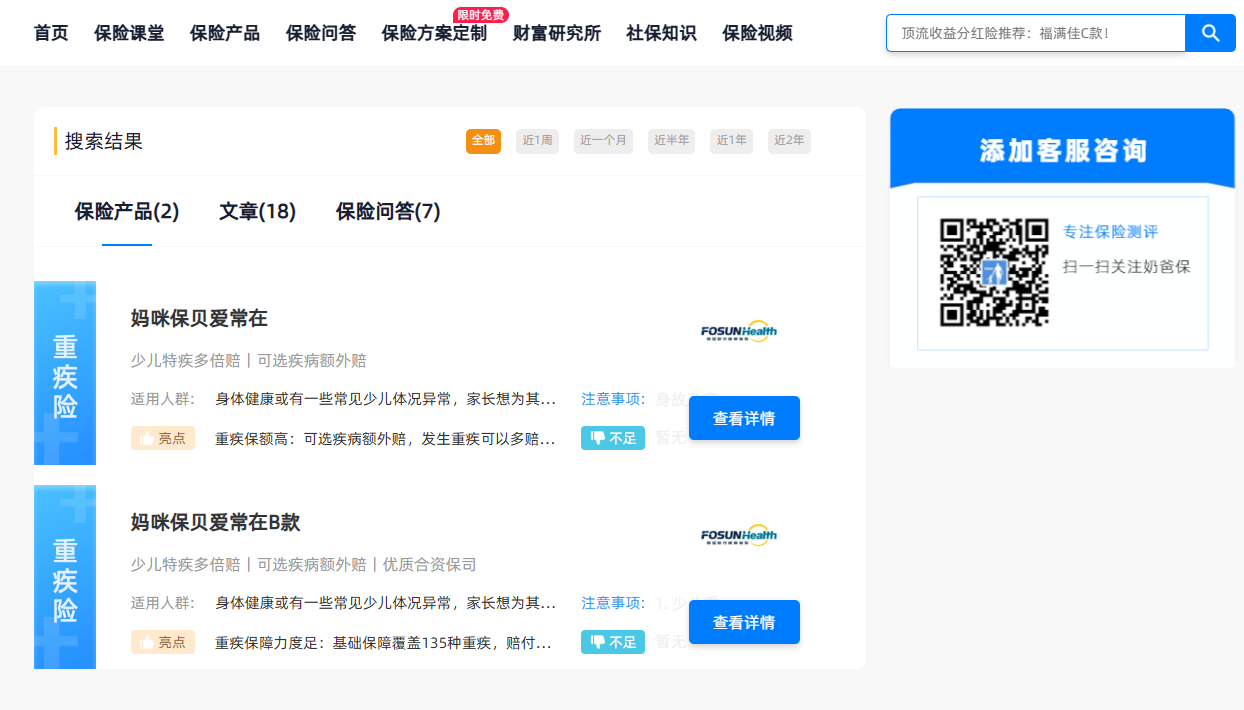 一、妈咪保贝爱常在B款少儿重疾险投保入口在哪?