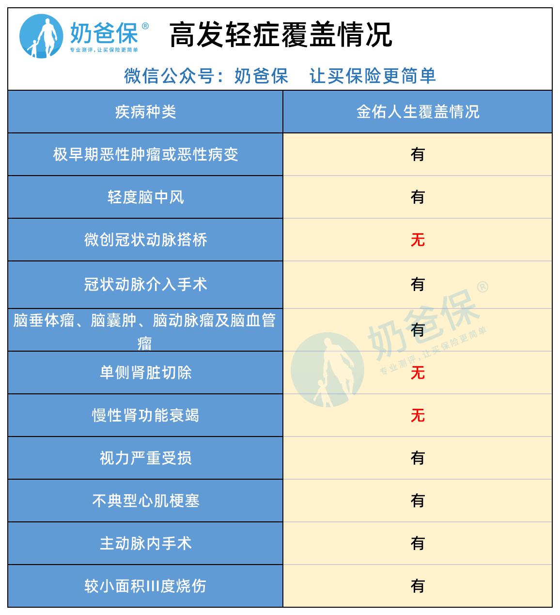 1、病症保障:保障轻症和重疾,缺少中症