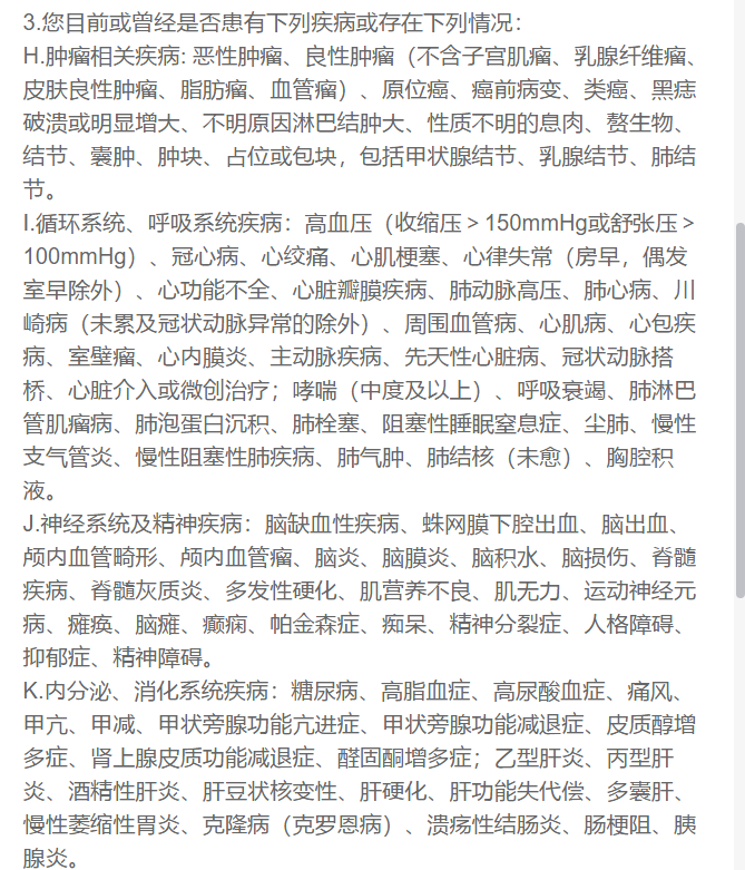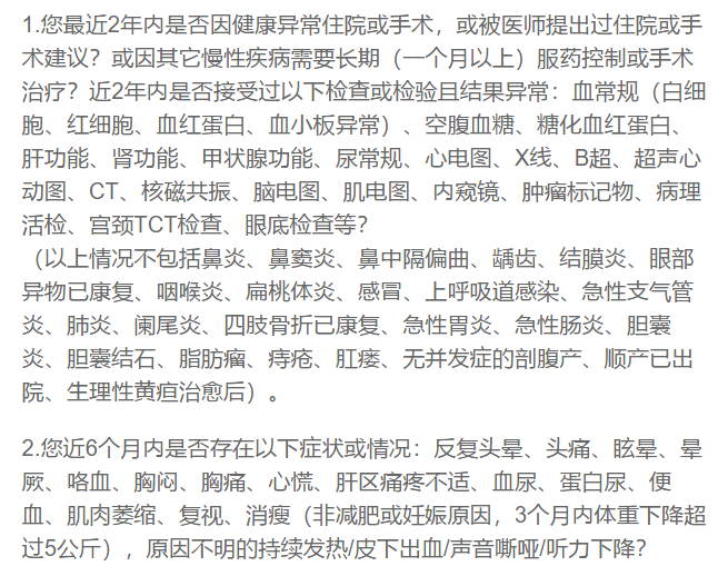 主要集中在既往病史,特别是对过去是否患有肿瘤有着严格的要求。